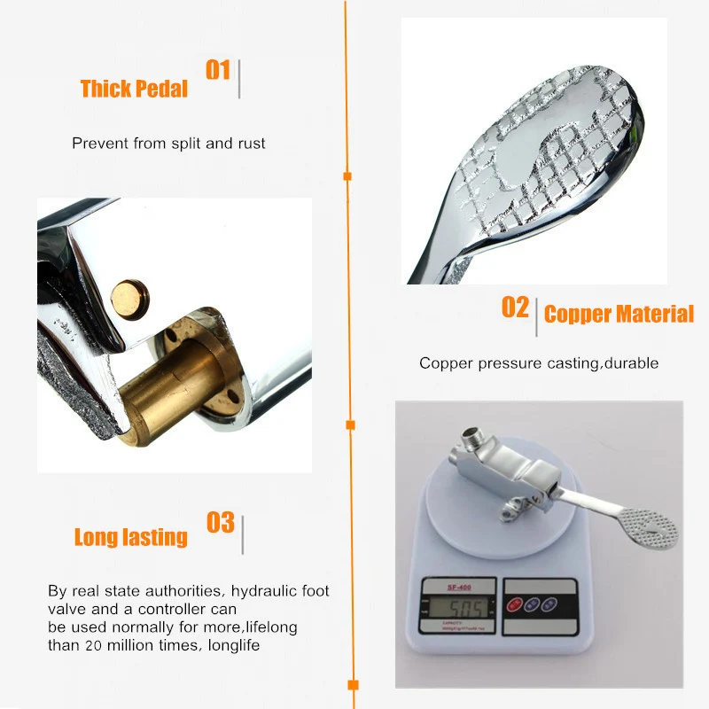 -Экономия воды: использование педалей для ног, автоматическое управление водой valvess, открытие после использования, вода автоматически отключается, так что больше для экономии водных ресурсов.