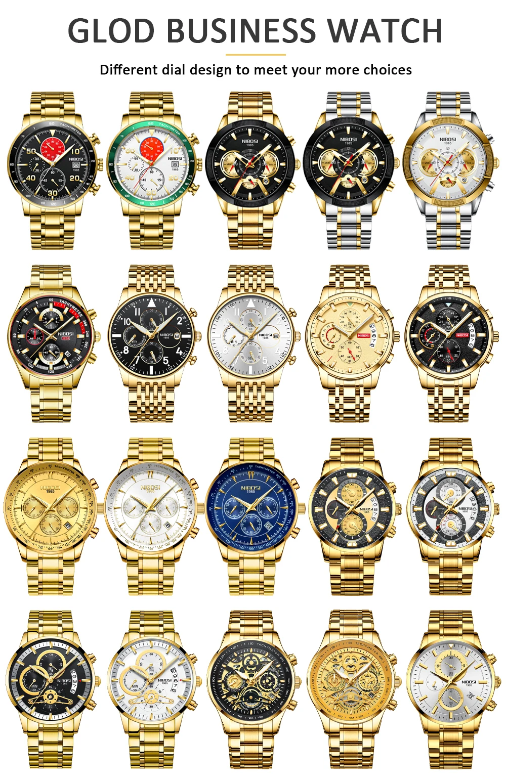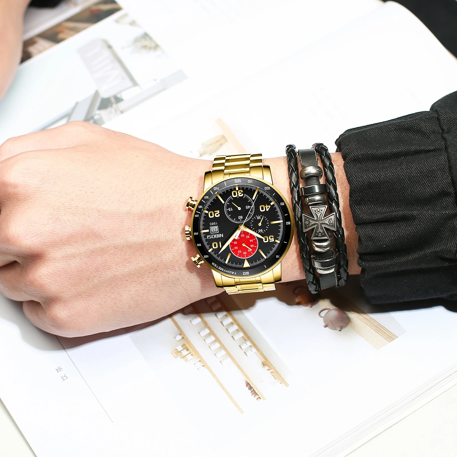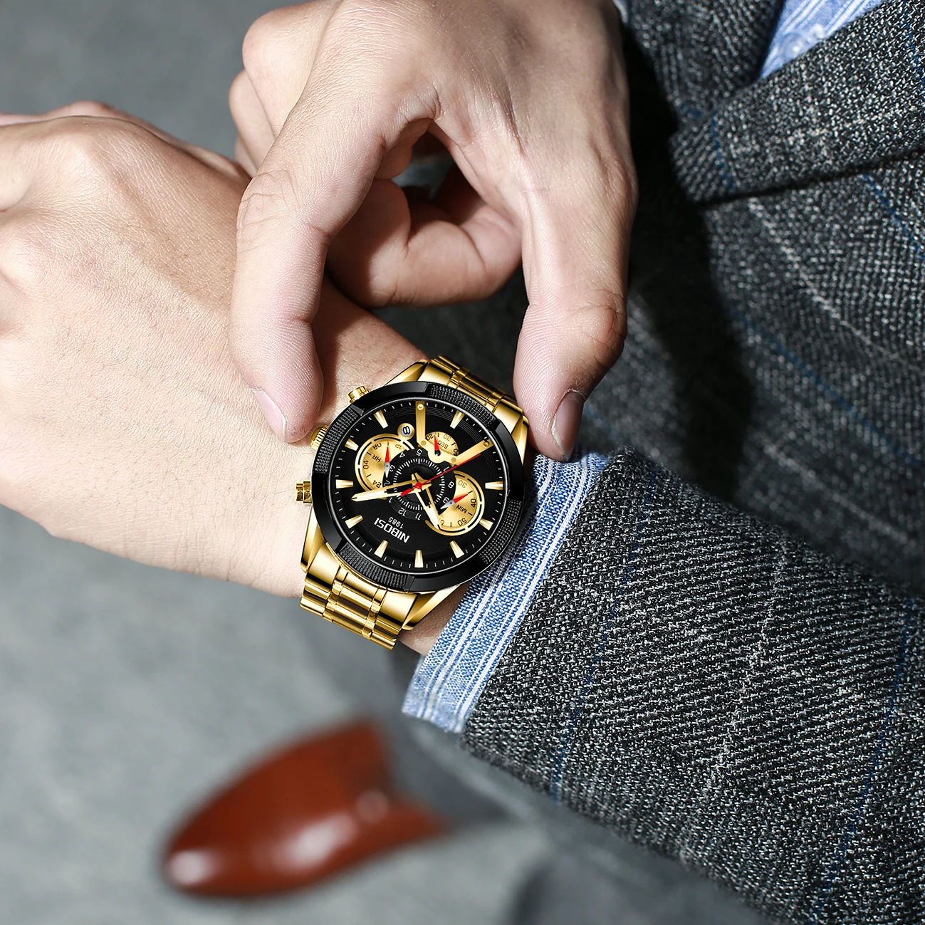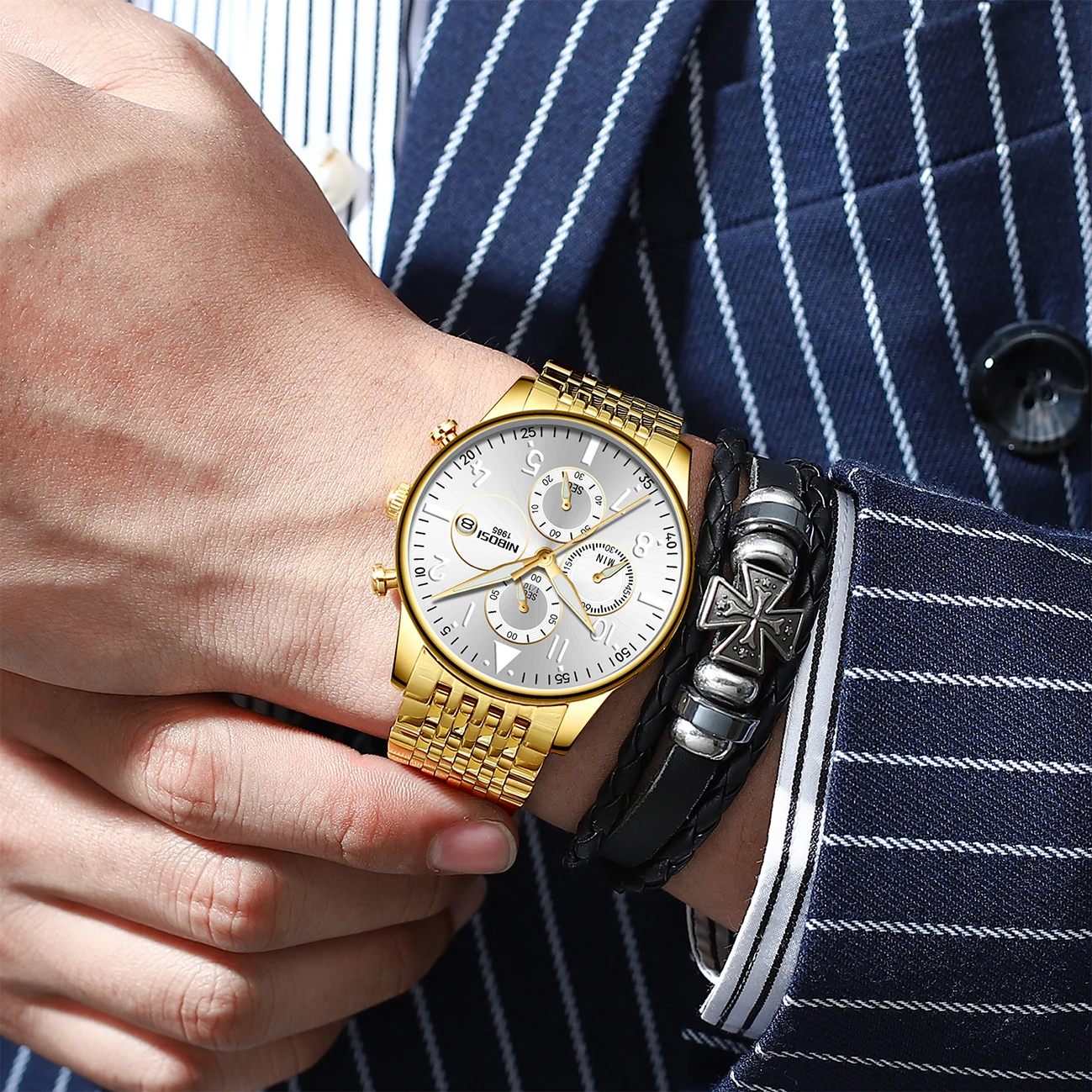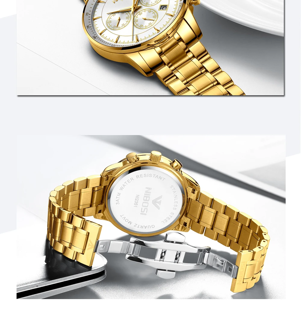 NIBOSI золотые мужские кварцевые наручные часы Топ бренд Роскошные мужские часы Бизнес наручные часы военные водонепроницаемые Relogio Masculino