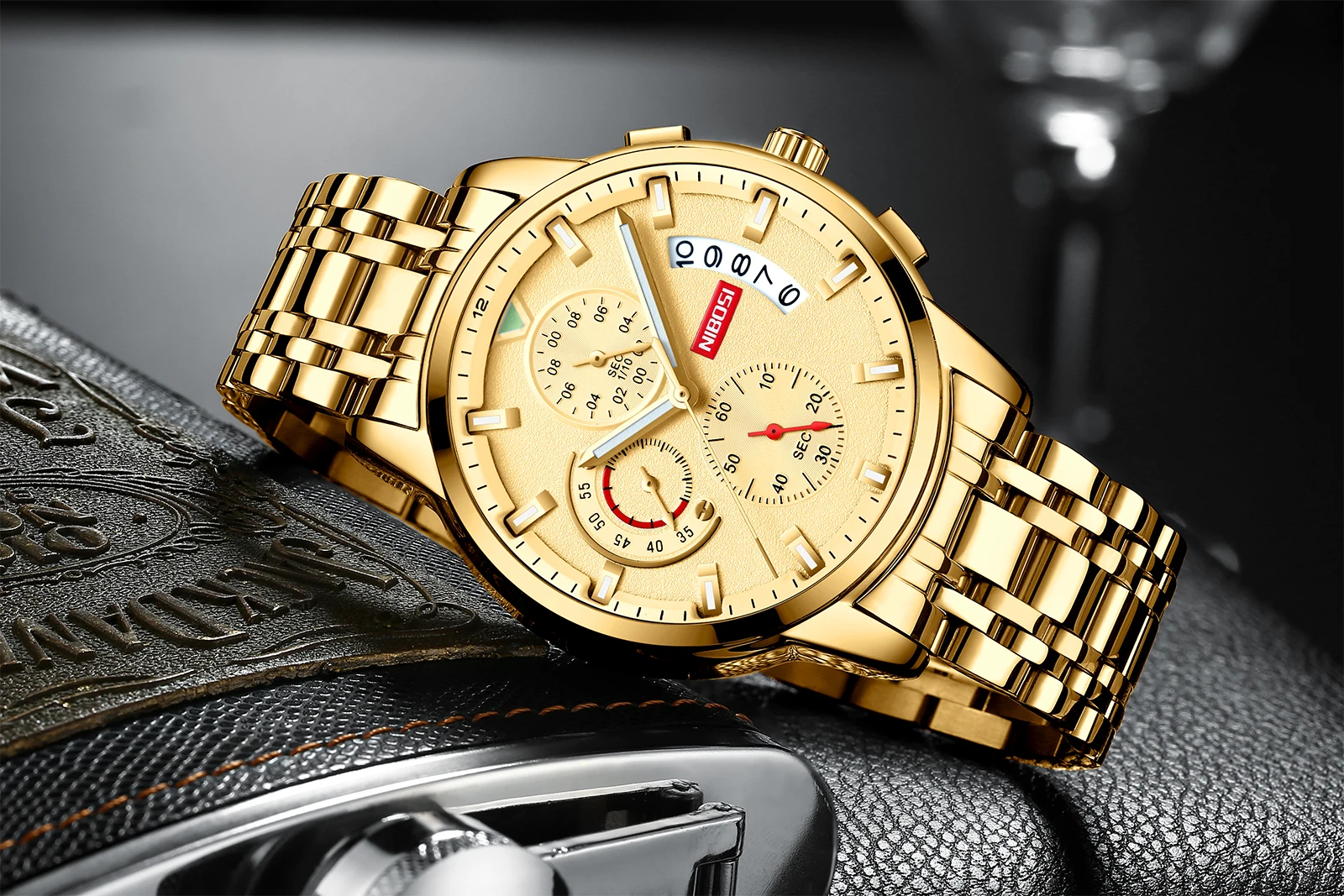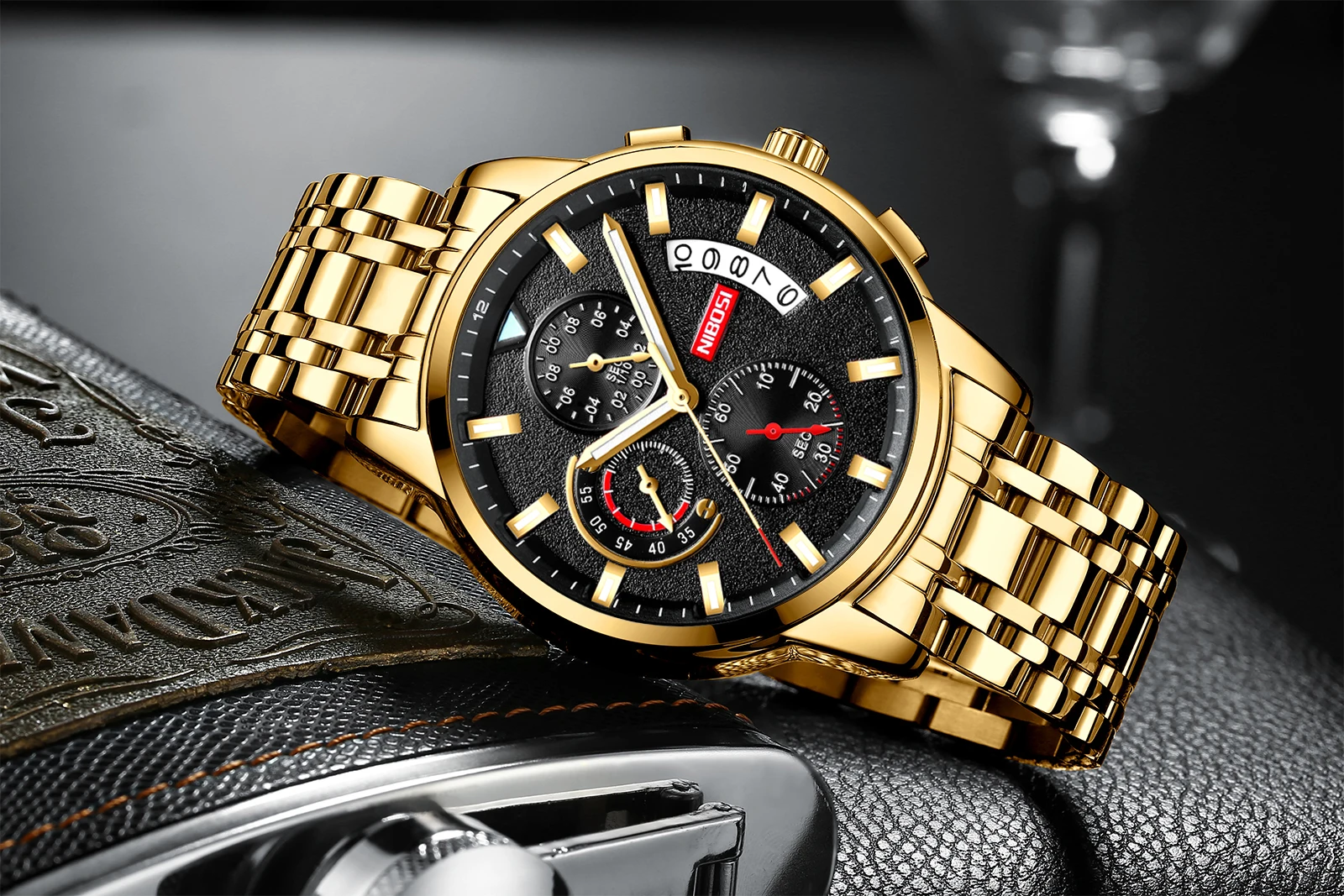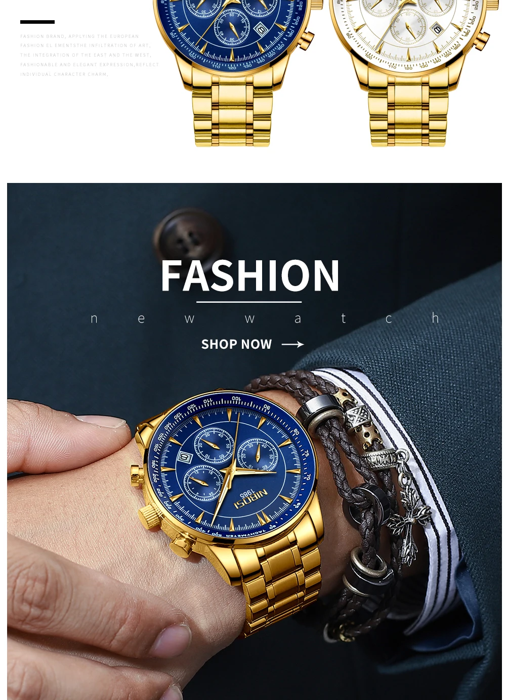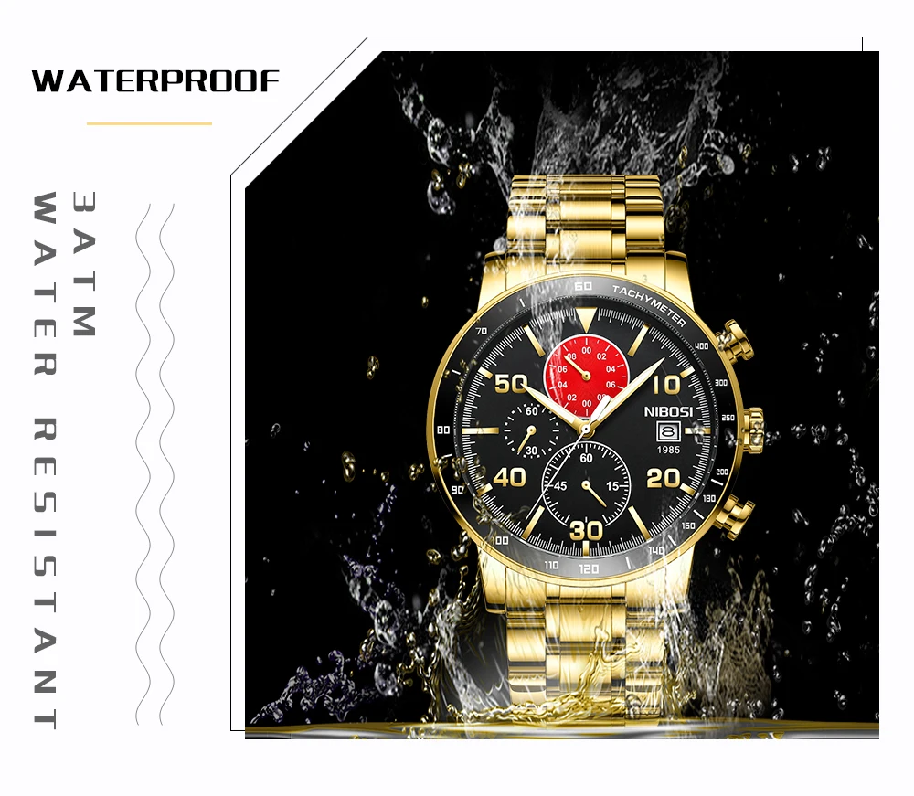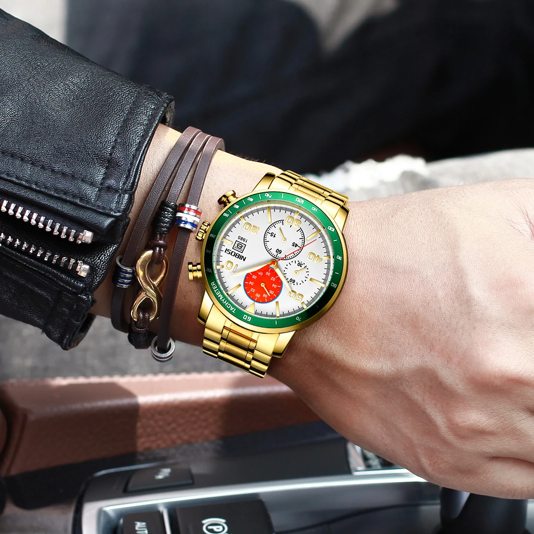 NIBOSI золотые мужские кварцевые наручные часы Топ бренд Роскошные мужские часы Бизнес наручные часы военные водонепроницаемые Relogio Masculino