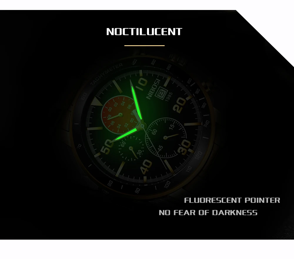 -1 x часы NIBOSI -1 x коробка NIBOSI -1 Инструкция -1 х ткань для чистки часов -1 гарантийный талон -1 инструмент для регулировки ремешка