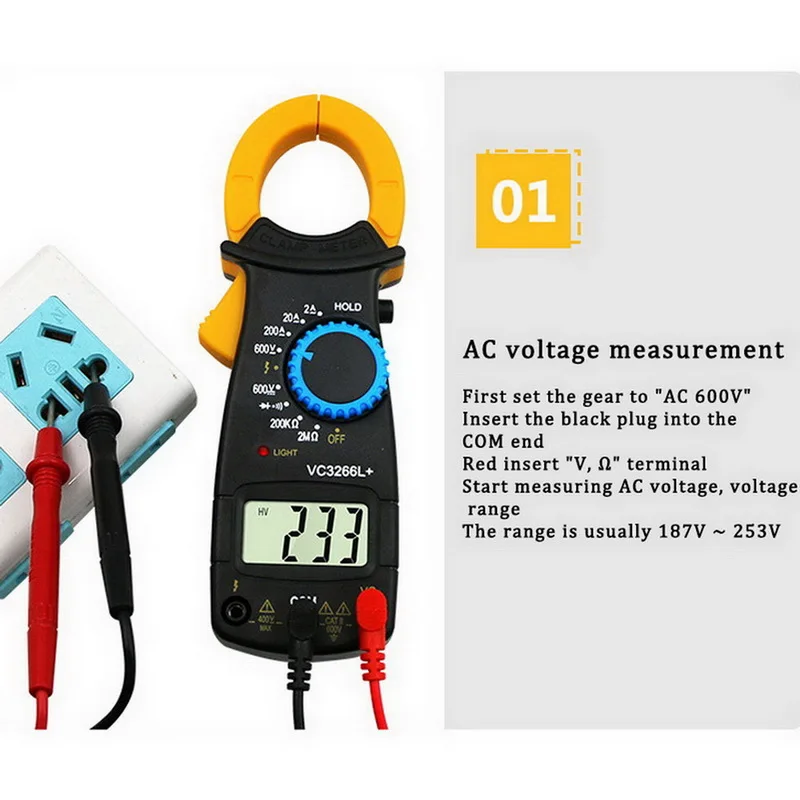 <Многофункциональный: мультиметр может измерять напряжение переменного/постоянного тока, сопротивление и переменный ток.