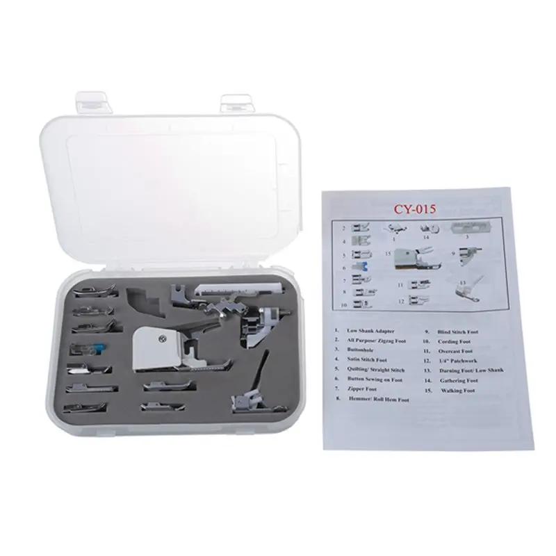 Красивый набор из 15 различных высококачественных ножек для вашей швейной машины.