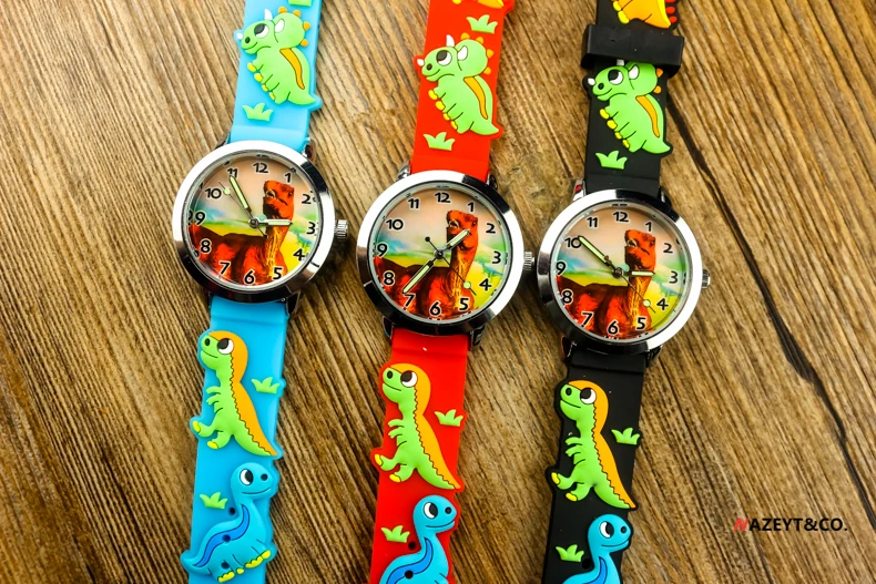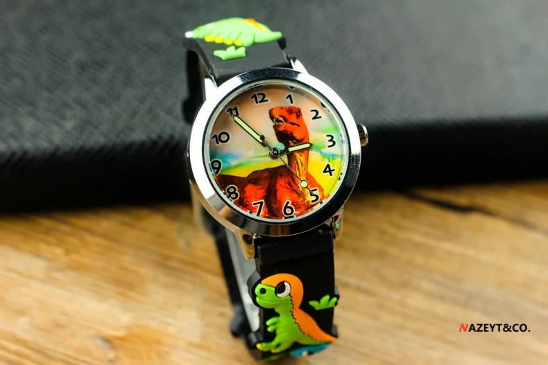 Акция Детские Мультяшные Часы Маленькие Мальчики Девочки динозавр циферблат 3D силиконовый ремешок часы студенческие светящиеся руки спортивные часы