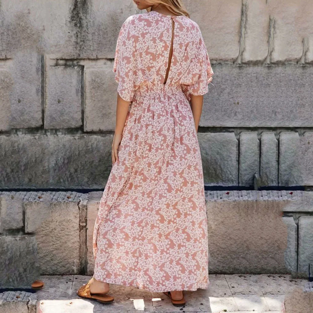 Женское летнее Повседневное платье Jaycosin, элегантное платье с v-образным вырезом, модель 2020, сексуальные вечерние платья без бретелек с коротким рукавом и принтом, шикарное свободное платье 76