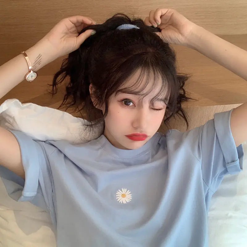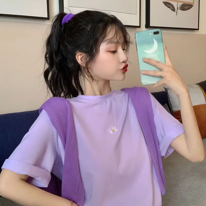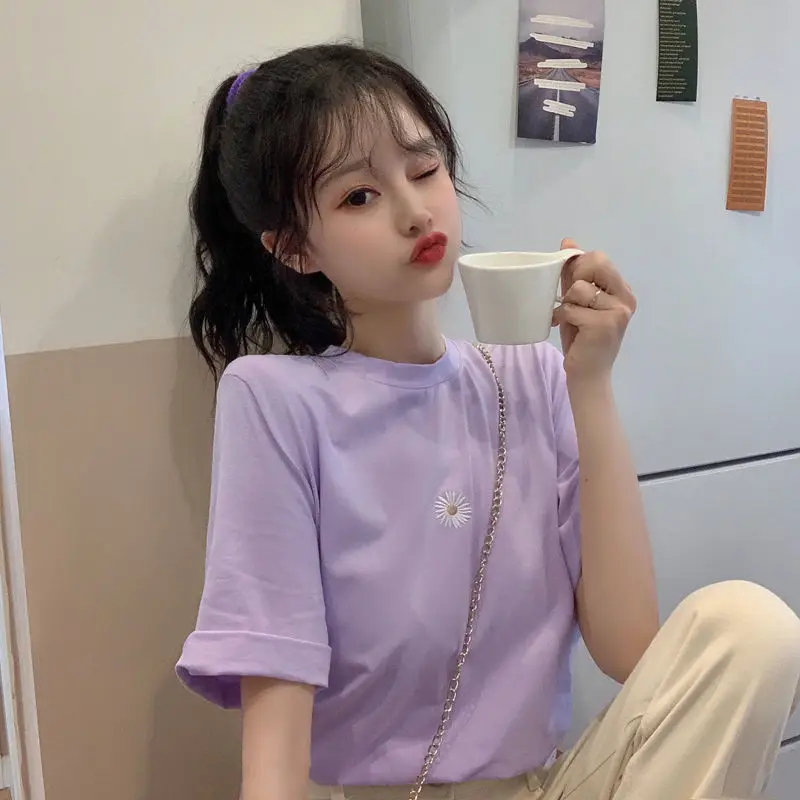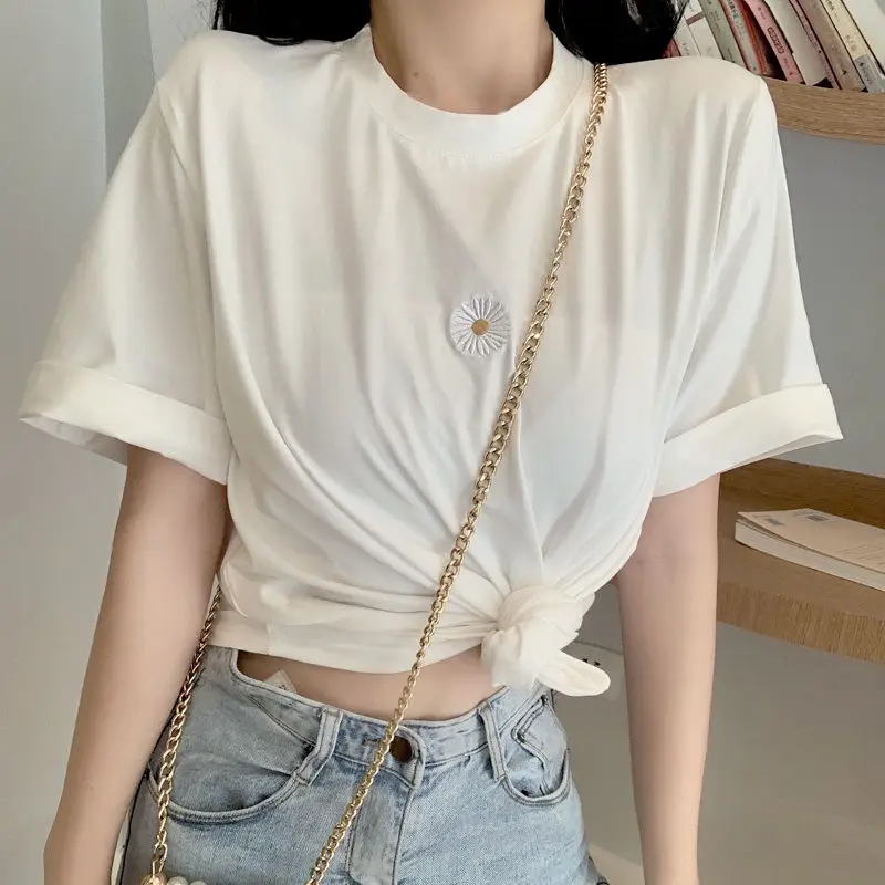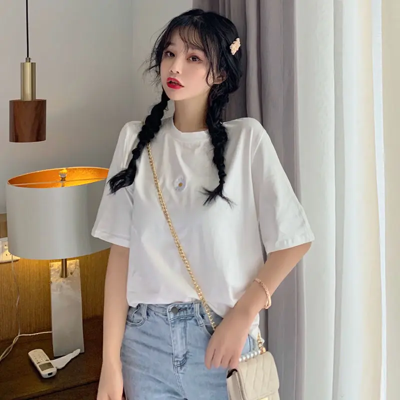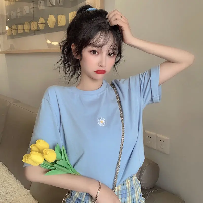 Стиль: Корейская Милая футболка с вышивкой для девочек модная Маргаритка