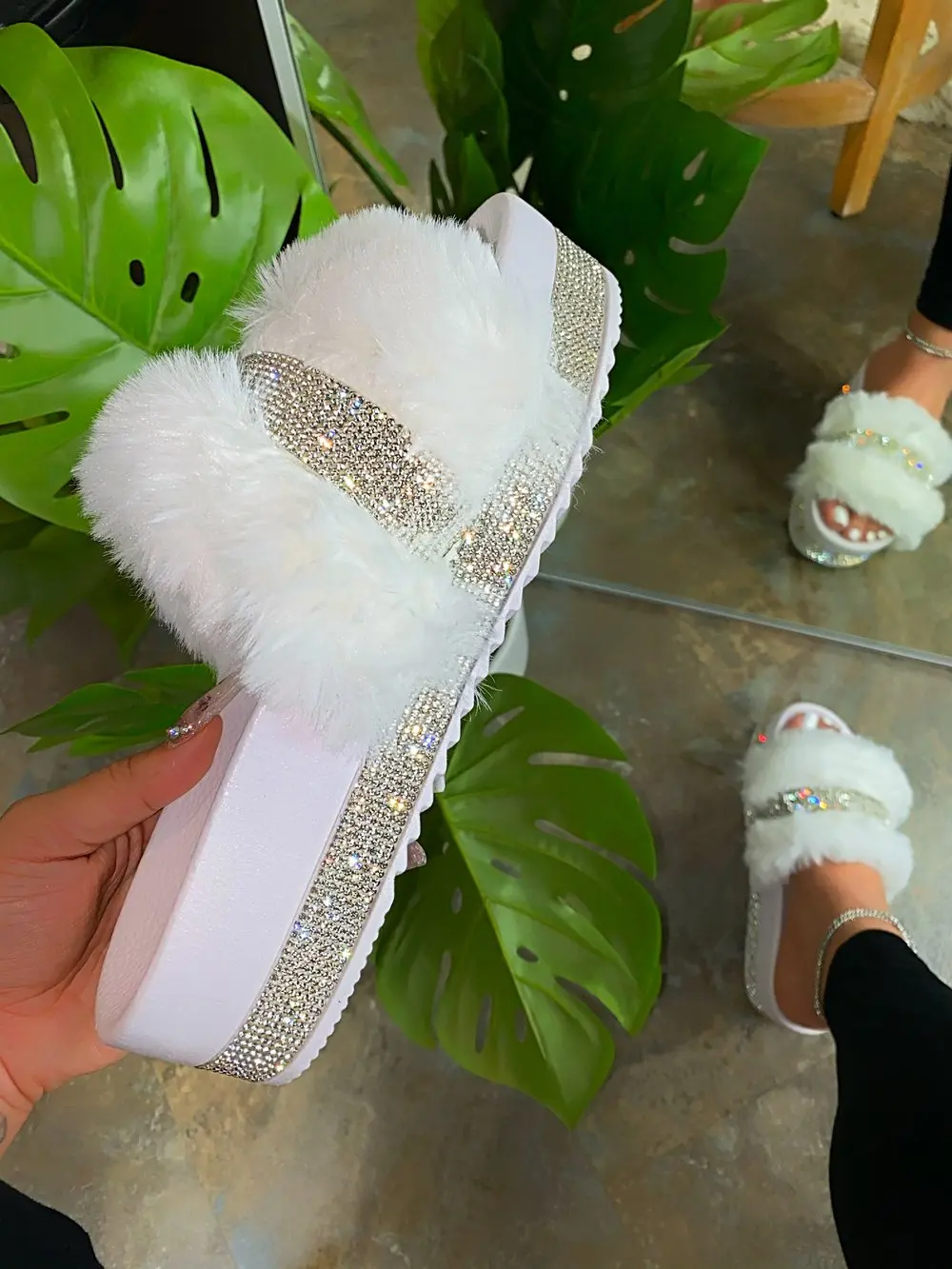 2020 новые меховые шлепанцы без задника с открытыми пальцами; Женские домашние и летние Розовая обувь для женщин Модный Блестящий Чехол-книжка с ремешком для большого пальца; Женская обувь на платформе мягкие тапочки на плоской подошве смешанных Цвета