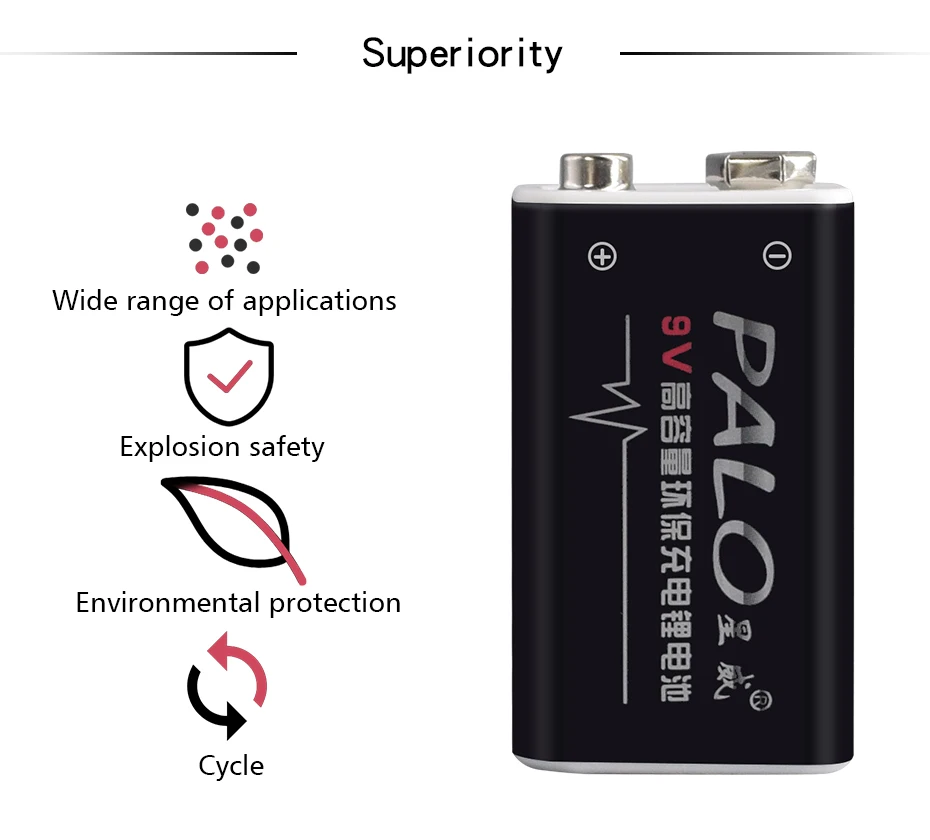 9V литий-ионная/ni-mh аккумуляторная батарея зарядное устройство-Ультра подходит для 1/2/3/4/5 9V li-ion/ni-mh аккумуляторы. Лучший выбор для путешествий-мини и портативное зарядное устройство USB Пришло время попрощаться с адаптером переменного тока и гнездом переменного тока при зарядке аккумуляторных батарей. Уникальный дизайн USB свободно совместим со всеми usb-устройствами 5 В, такими как внешний аккумулятор, адаптер, солнечное зарядное устройство и т. д. Зарядное устройство USB Smart & Speed Вход: 5 В/1 А Выход: 8,4 в постоянного тока/250mA 9 в DC/80 мА Удобный светодиодный индикатор хода зарядки Красный мигание означает зарядку; Зеленый светильник означает полную зарядку. (Светильник без нагрузки) Изготовленное зарядное устройство обеспечивает безопасность * Интеллектуальное управление с усовершенствованной системой MCU, cut V и-△V метод отключения зарядки, автоматически останавливает зарядку при полной зарядке. * Защита от короткого замыкания, защита от обратной полярности и обнаружение перегрева для предотвращения перезарядки. * Конкретный режим зарядки позволит увеличить емкость аккумуляторной батареи. Посылка включает в себя: зарядное устройство 9 В, usb-кабель, аккумулятор 9 В и батарейный блок.
