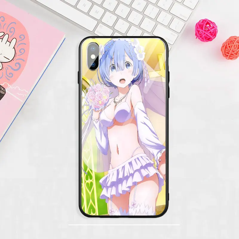 Чехлы из закаленного стекла для iphone 7 5 5S SE 2020 6S 6 8 Plus X XR XS 11 Pro Max сумки аниме девушка Zero Rem Прекрасный черный узор чехол для телефона противоударный чехол защитный чехол для телефона