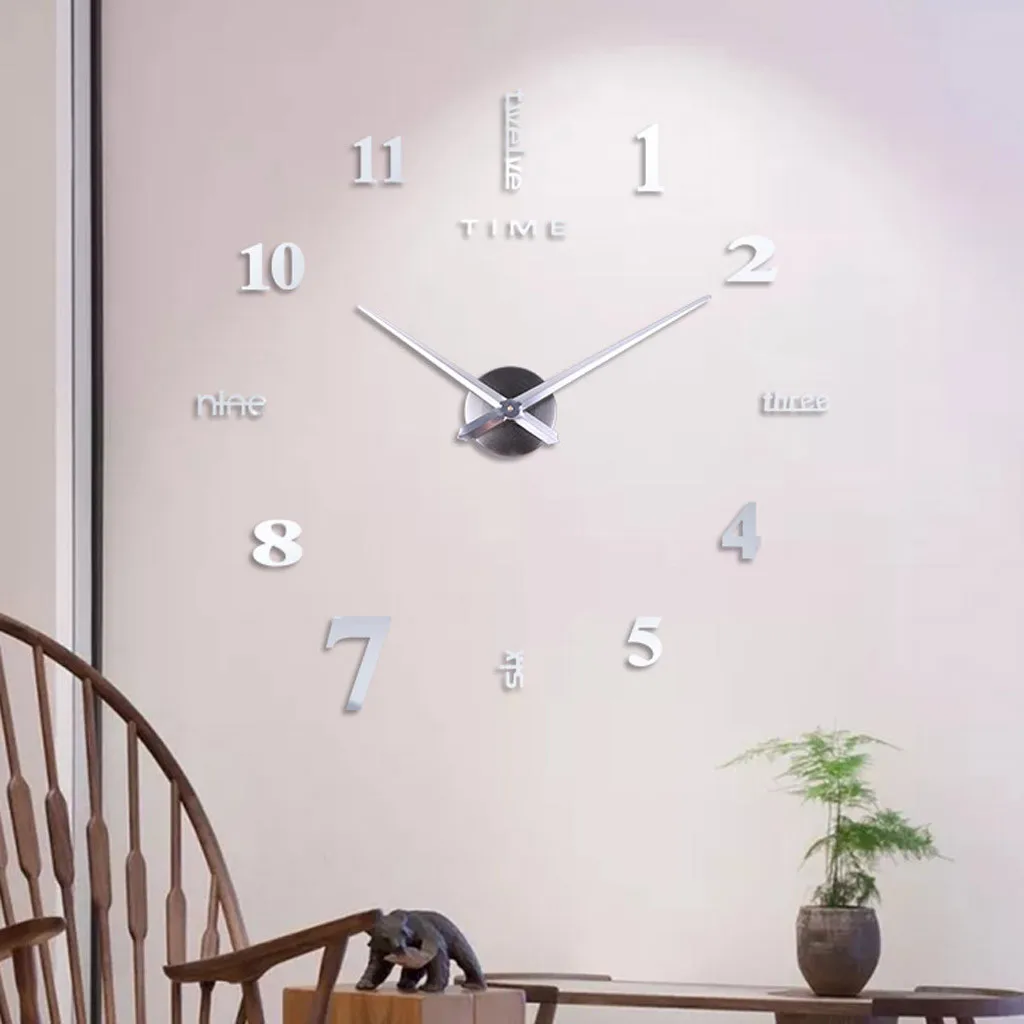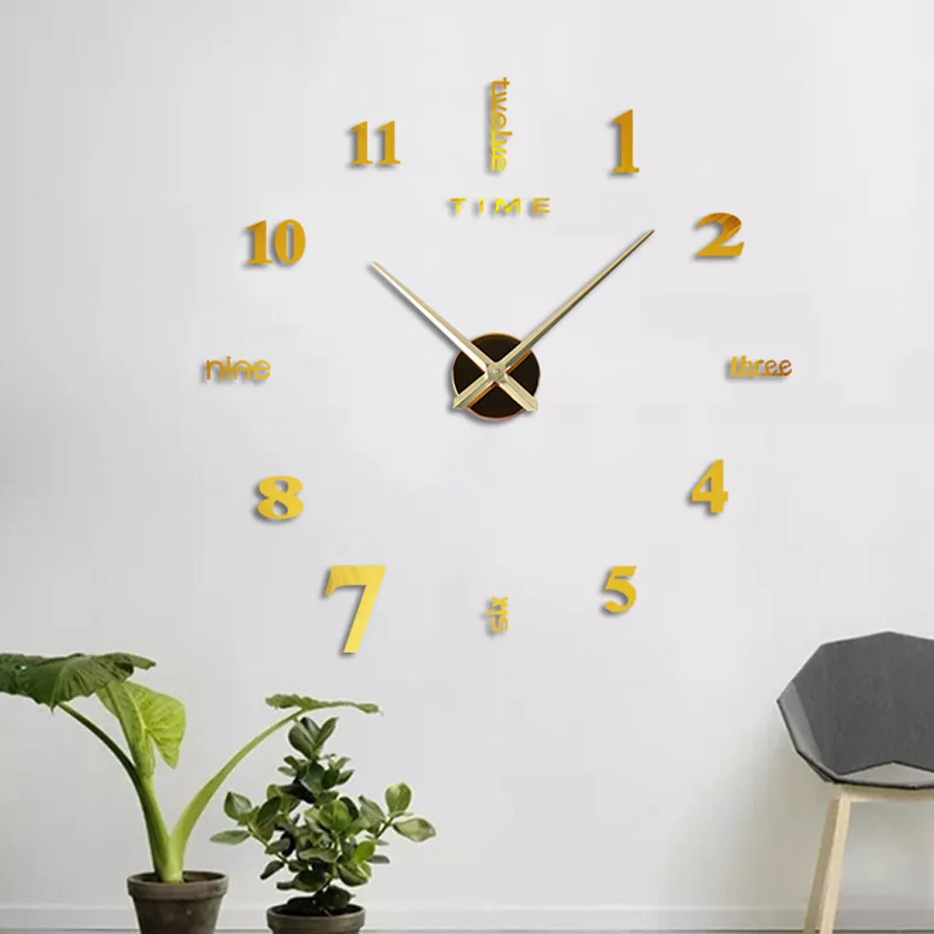Feature: Quantity: 1 A fashion and creative DIY 3D effect 12-hour display wall clock Suitable for smooth walls of all rooms, coffee shop, hall, etc Can be applied on walls, doors, windows, closets, plastic, metal, tiles etc Can be used as gifts, crafts, home decoration Stainless steel clock face, aluminum clock pointer and EVA foam stickers Waterproof eco friendly EVA foam material DIY distance from different digits and its shape Self-adhesive, water and steam resistant, nontoxic Easy to install and remove the sticker Material: Stainless steel, aluminum, acrylic and EVA foam Hour pointer length: 9cm Minute pointer length: 12cm Reference achieving size (diameter): about 50cm (standard) Power: 1 x AA battery (not included) Digits shape: English letters and Arabic numerals Warm Tips:We advise you not to stick it on gray walls or wallpaper, because they may decrease the adhesive properties of the surface behind stickers. Package Content: 1X Acrylic Clock.