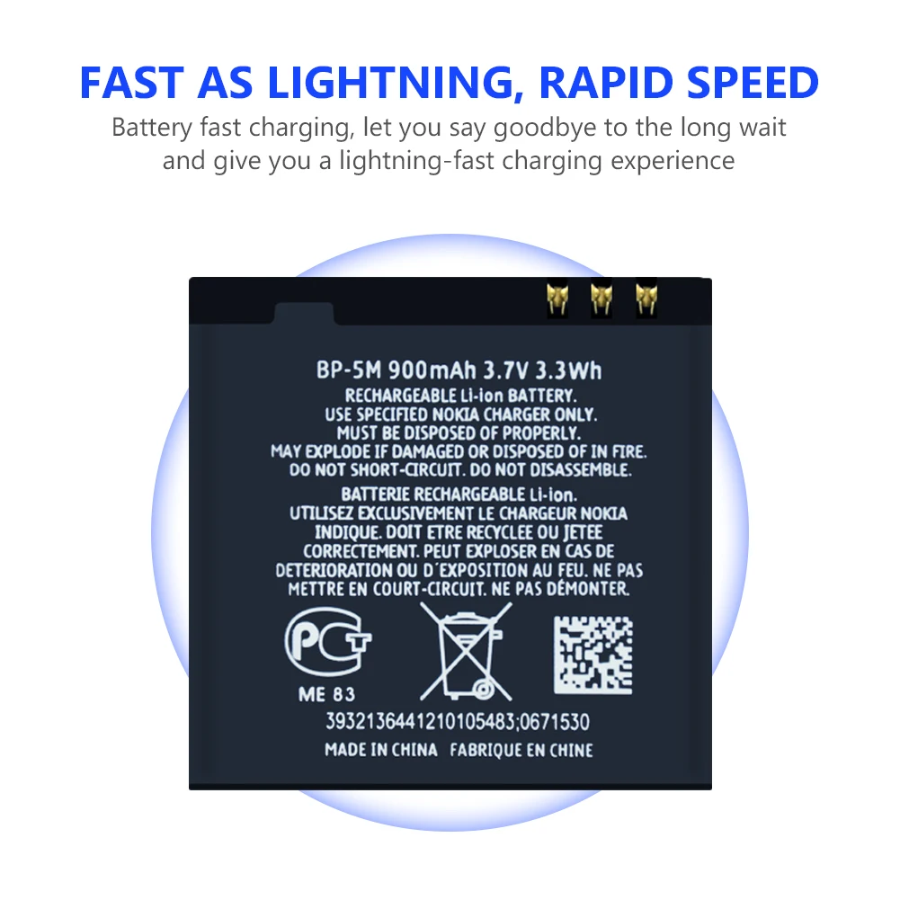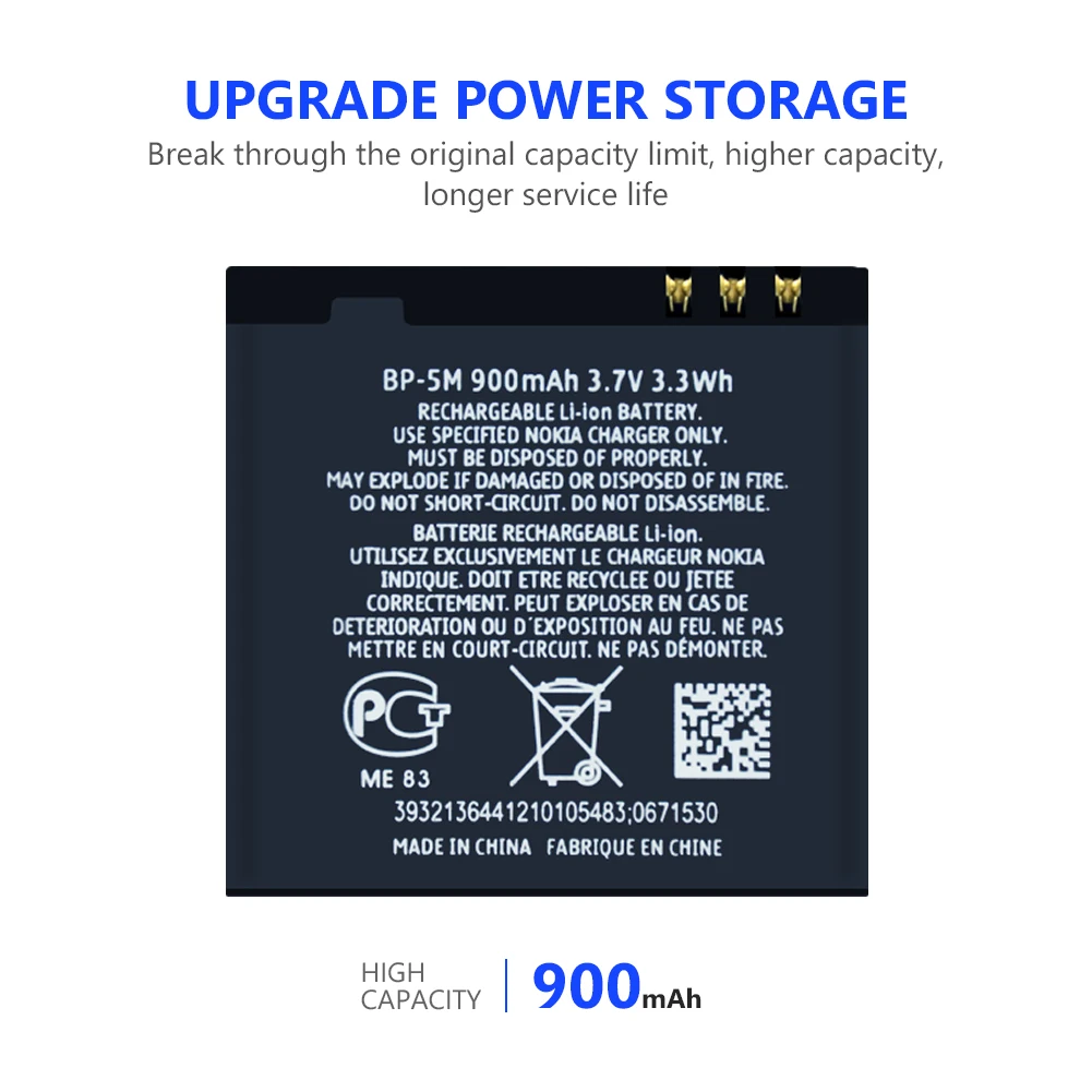 С большой емкостью 900 мА · ч, меньше беспокойтесь о том, что ваш сотовый телефон будет мертвым в течение короткого времени.