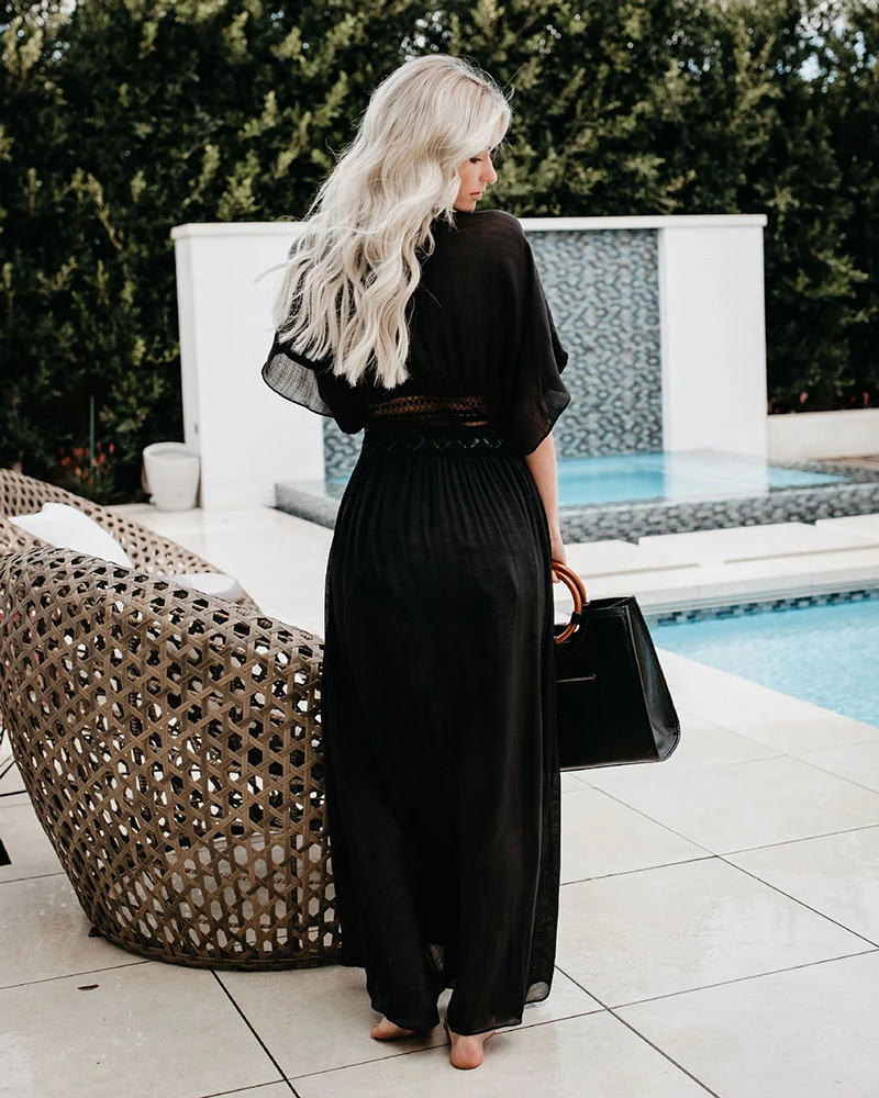 Лето 2019 лидер продаж накидка на бикини Пляжное платье женский черный сетчатый