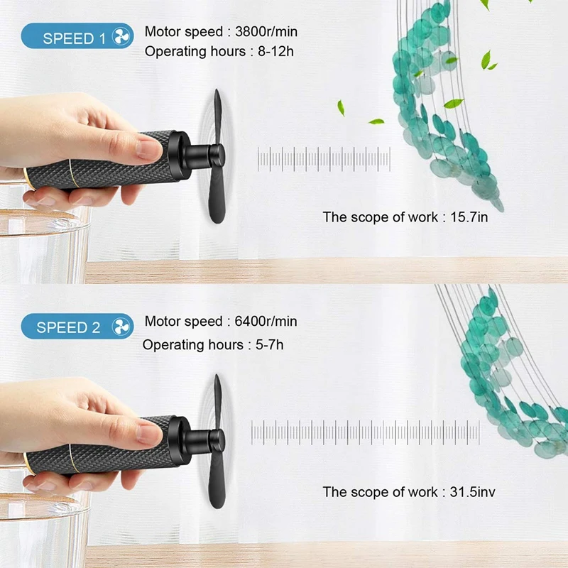 Портативный ручной вентилятор: 6400r/мин, маленький вентилятор имеет 2 шестерни (средний и высокий), с использованием бесщеточной техники двигателя (для Дронов), ветер от вентилятора ближе к естественному ветру, небольшой вентилятор для удобной переноски, это обязательный продукт для лета.