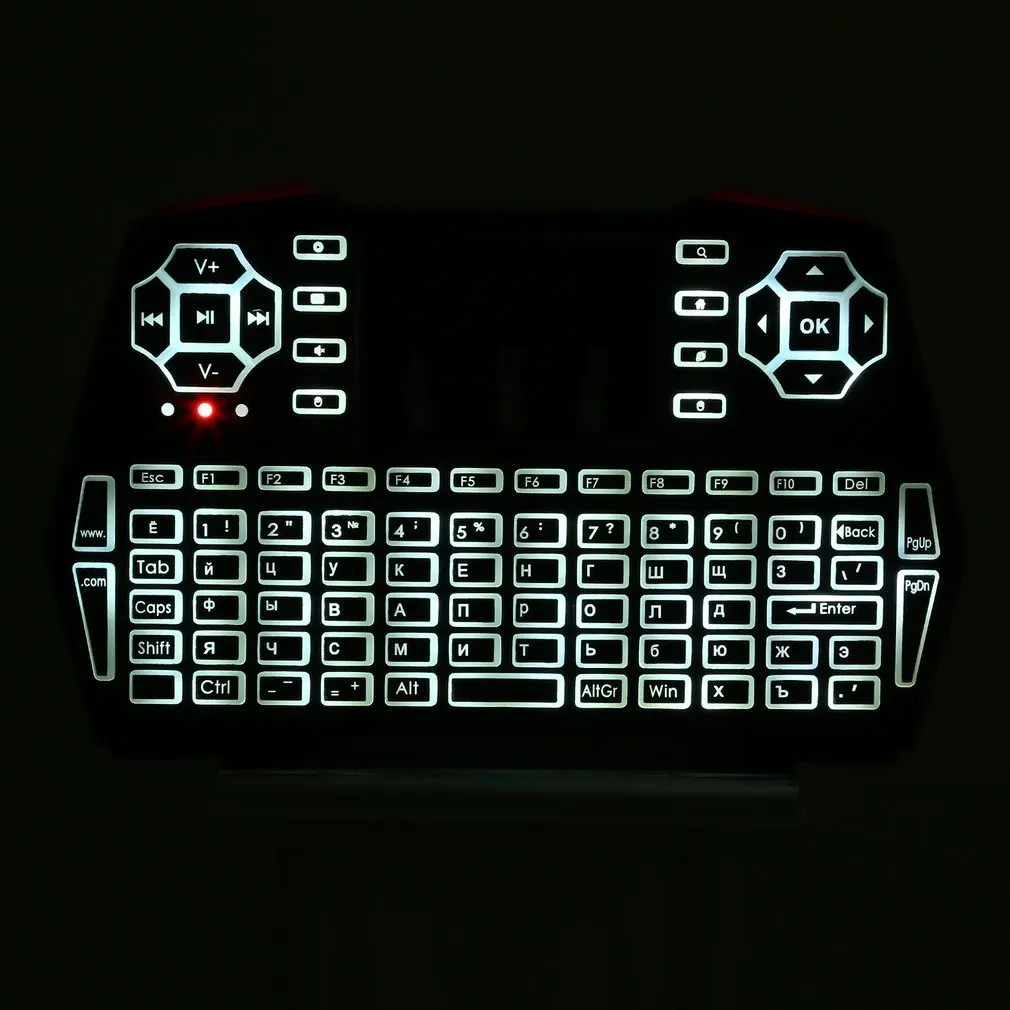 Эта мини беспроводная клавиатура с тачпадом мышь имеет подсветку по желанию, просто нажмите Fn + F2 кнопку для включения/выключения подсветки или изменения цвета подсветки.