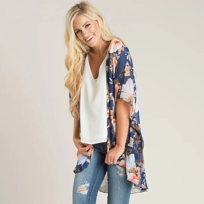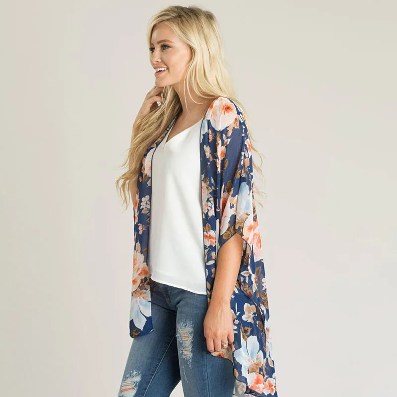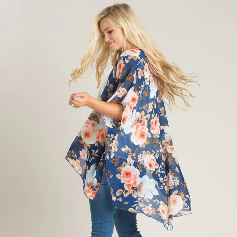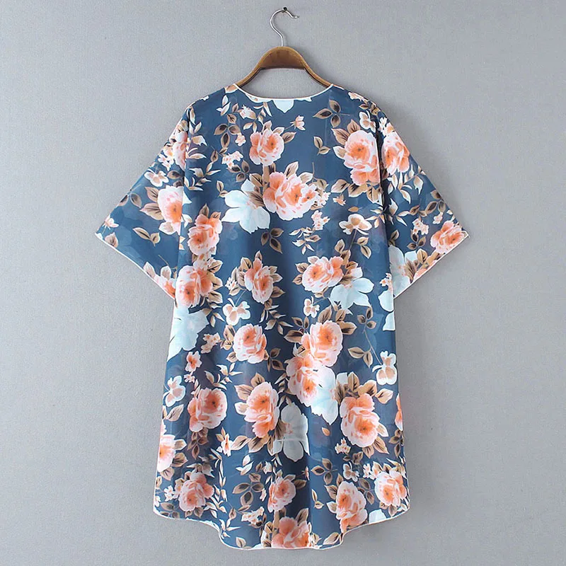 Эта модель выполнена из невесомого шифона с изысканным цветочным принтом и необычным силуэтом. Он имеет открытый спереди и широкий рукав. Он будет идеально подходит для теплых дней в городе или бальми вечеров в отпуске.