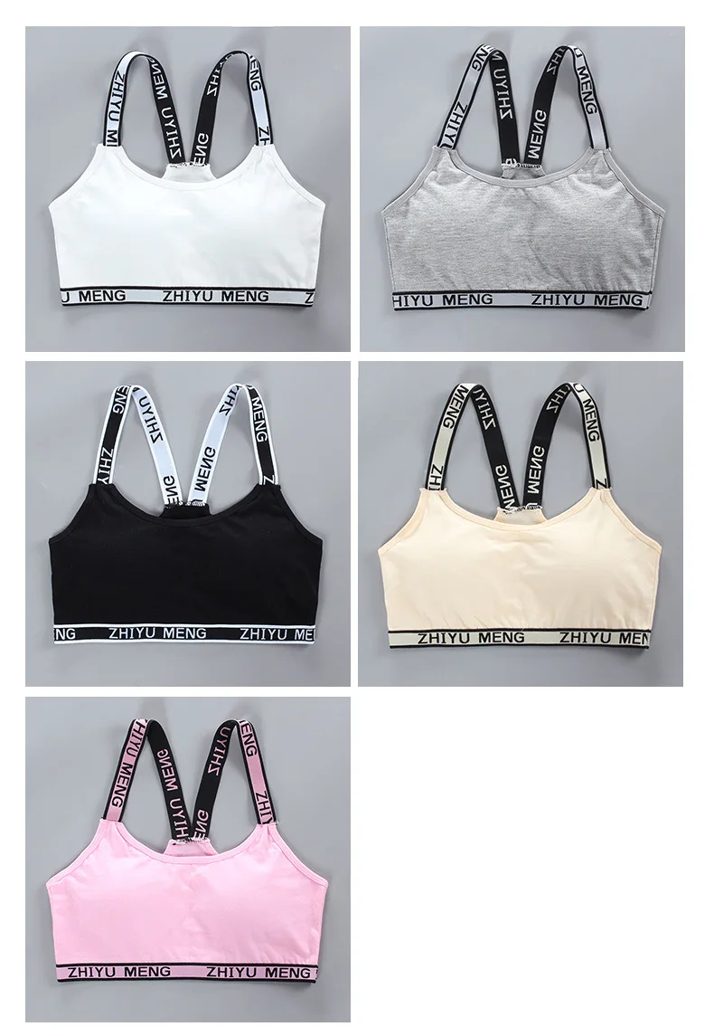 5 шт./лот; Бюстгальтер для подростков; Жилет для девочек; Хлопковое Спортивное нижнее белье для больших девочек; Подростковое детское нижнее белье; Спортивный бюстгальтер с буквенным принтом