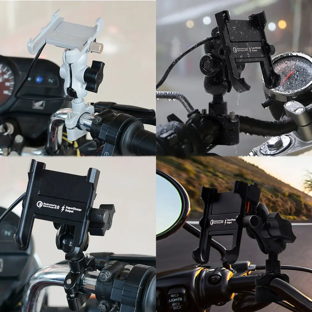 Водонепроницаемый металлический мотоцикл смартфон крепление с QC 3,0 USB быстрое зарядное устройство мотоцикл Зеркало Руль держатель