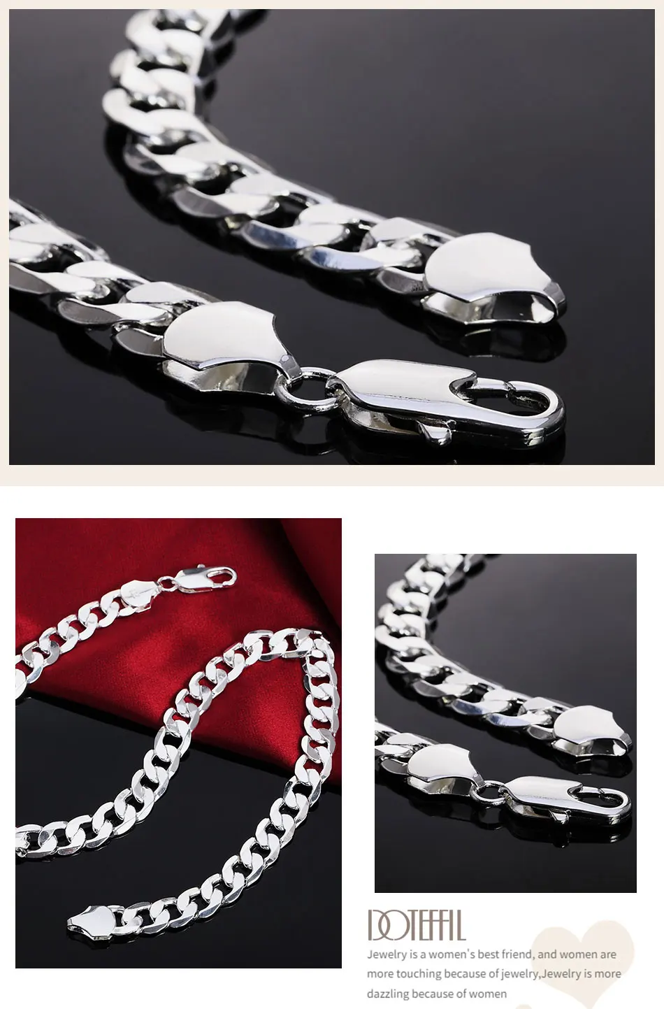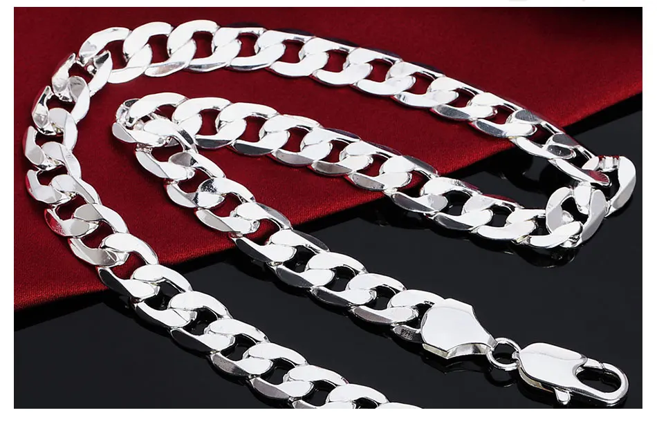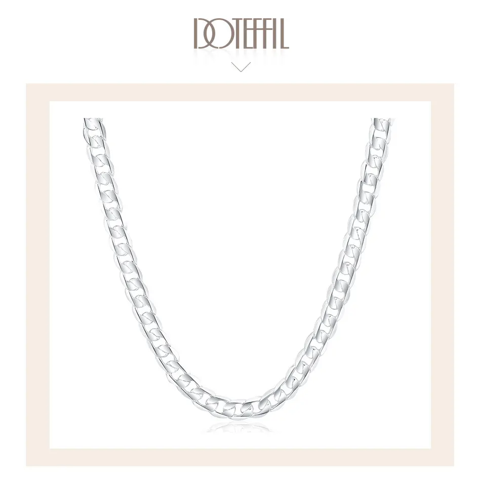 DOTEFFIL серебро 925 пробы 18/20/22/24/26/28/30 дюйма 12 мм плоское боковое ожерелье для женщин и мужчин модное свадебное очаровательное ювелирное изделие