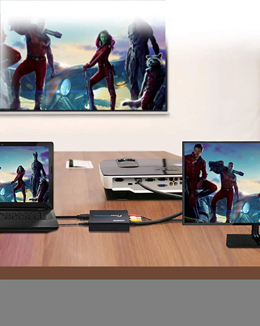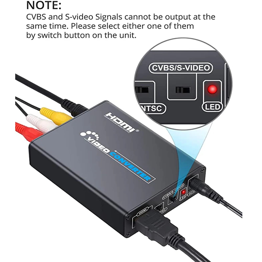 HDMI в RCA / S-видео конвертер:Устройство преобразует HDMI сигналы в RCA композитное видео (AV) и стерео L / R аудио сигналы. Он также преобразует сигналы HDMI в аналоговое видео S-video и аудио L / R