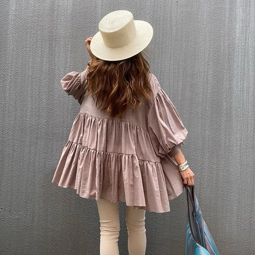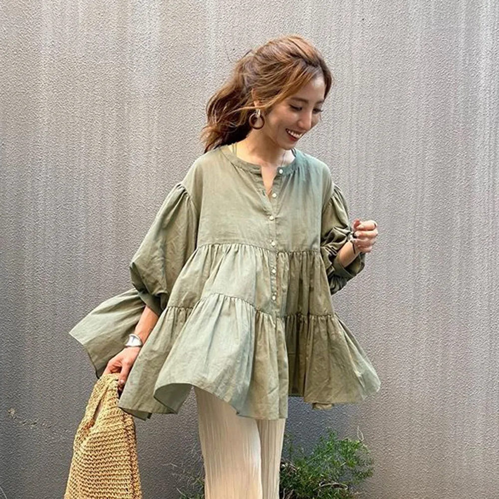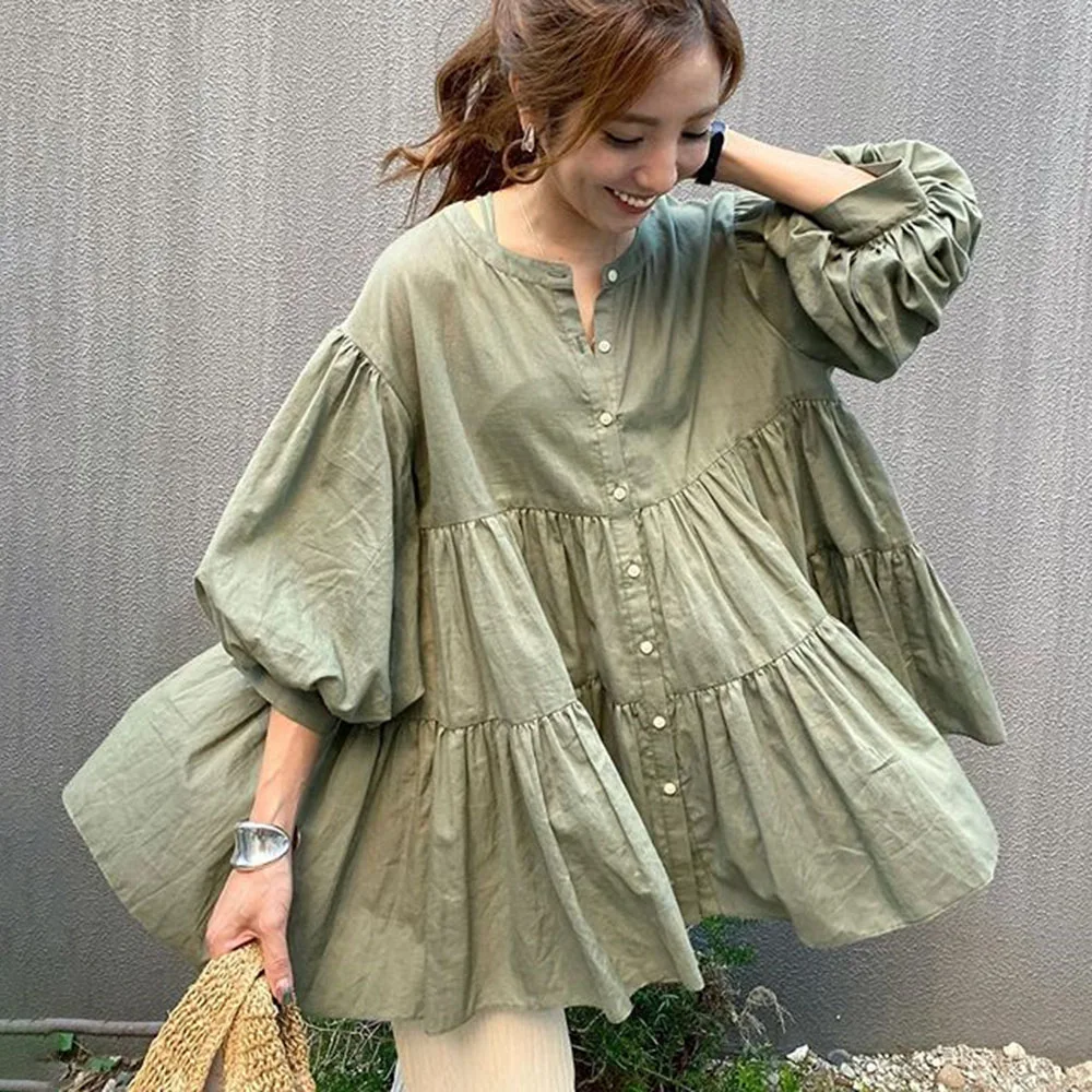 Японская свежая женская блузка, свободная повседневная мусорного контейнера урна уличная одежда, рубашки, однотонные женские топы в корейском стиле, осенняя мода 2021 г.; футболки с девятью рукавами
