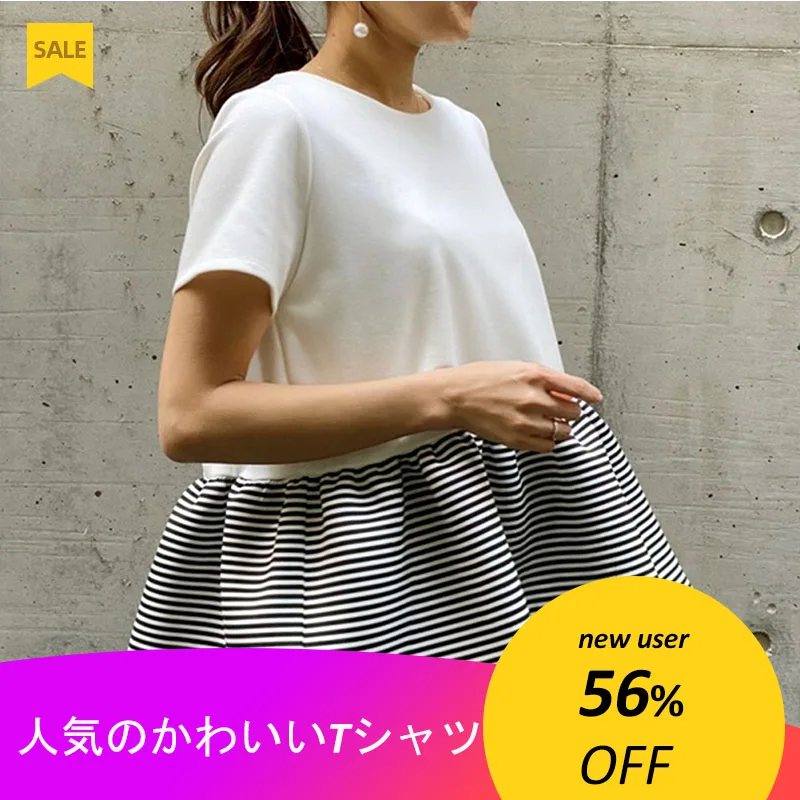 Bellaza/футболка в полоску, с оборками, с высокой талией, в стиле пэчворк, с баской, большой белый, черный топ, женская футболка Kawaii, летняя футболка CamisetaКупить сейчас![]()