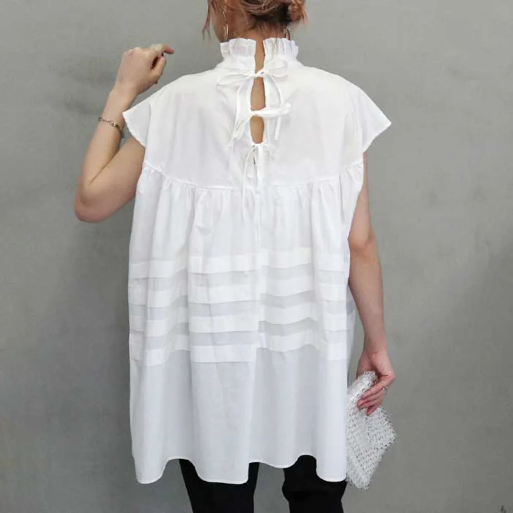Черная блузка, женская Свободная Повседневная Блузка без рукавов, пуловер, плиссированные летние корейские топы, модная уличная женская блузкаКупить сейчас