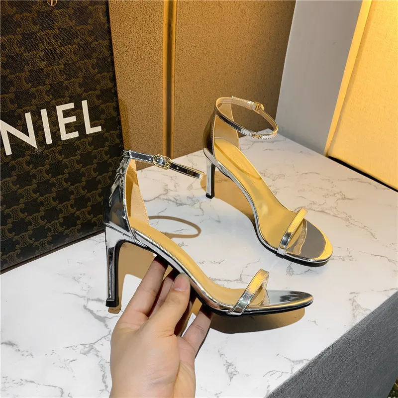 2020 г. Хит продаж, летняя женская простая однотонная блестящая обувь на высоком каблуке с пряжкой элегантные женские босоножки для свадьбы для вечеринки, 33-41