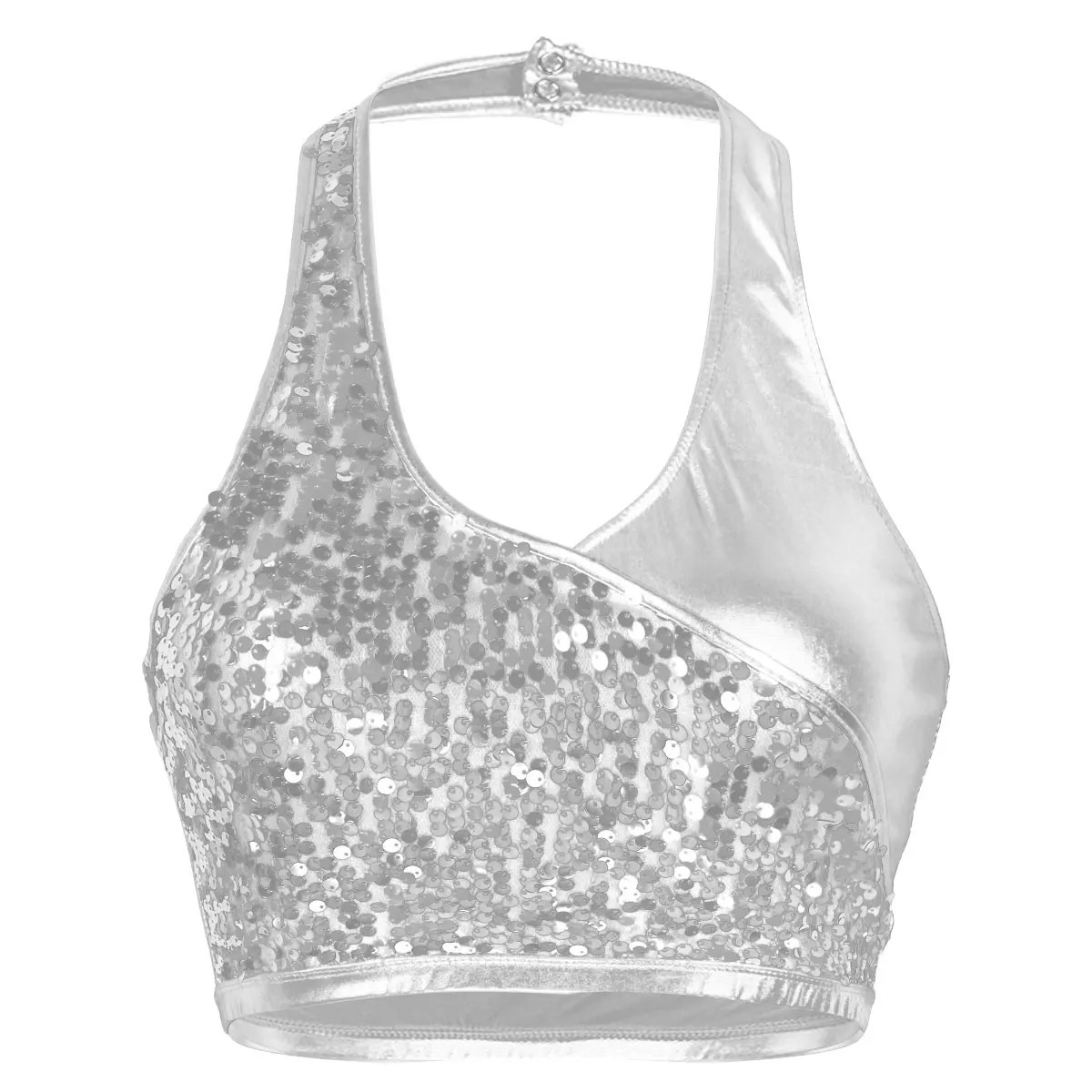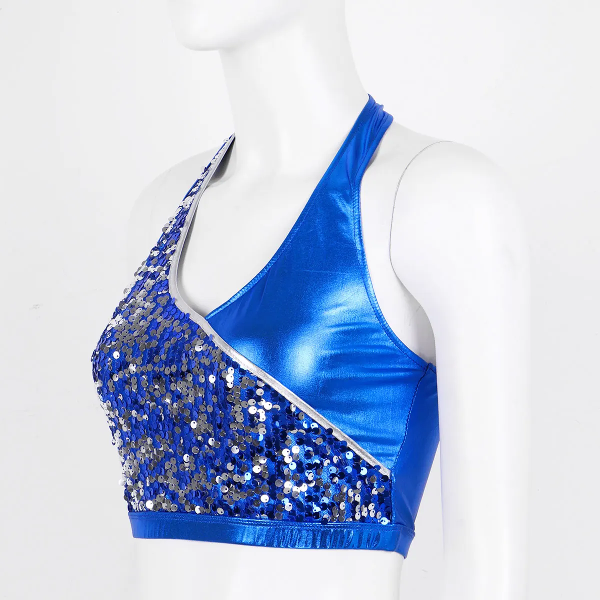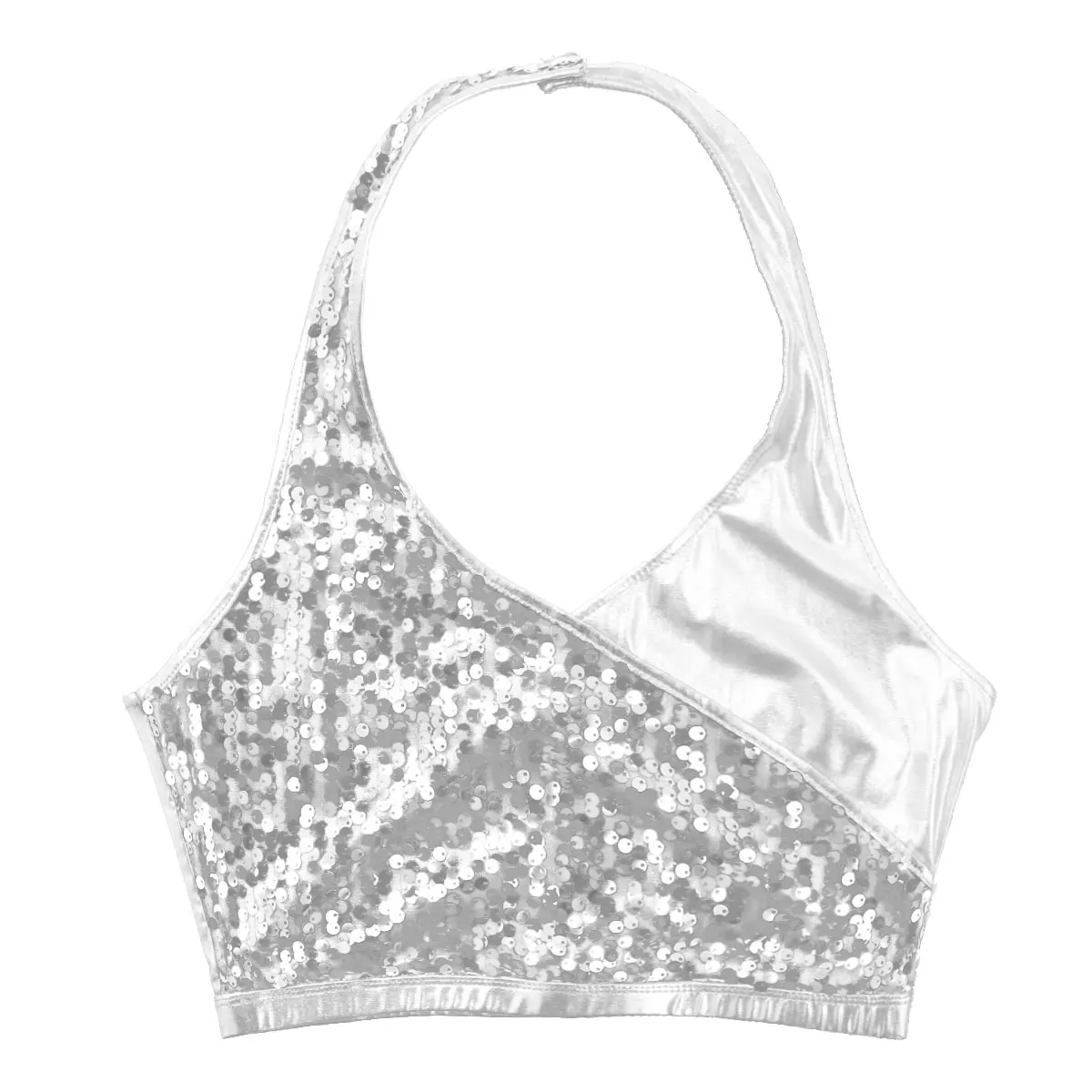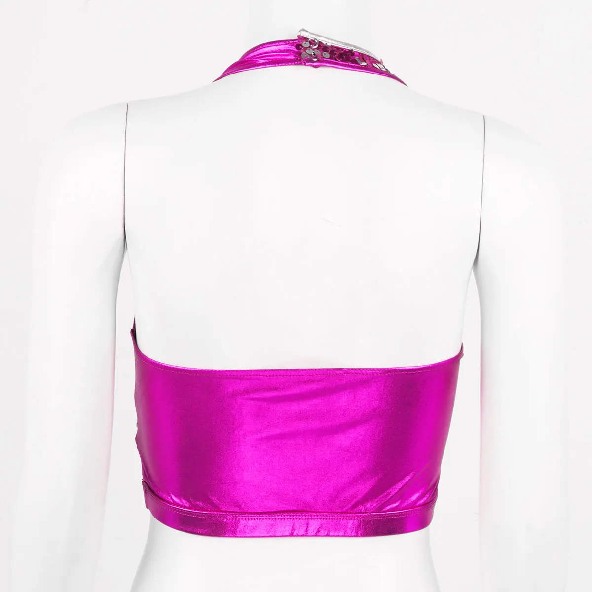Воротник с лямкой на шее с отжимными пуговицами сзади, без рукавов и с низкой спинкой, дизайн с искусственным запахом, наполовину с блестящими блестками.