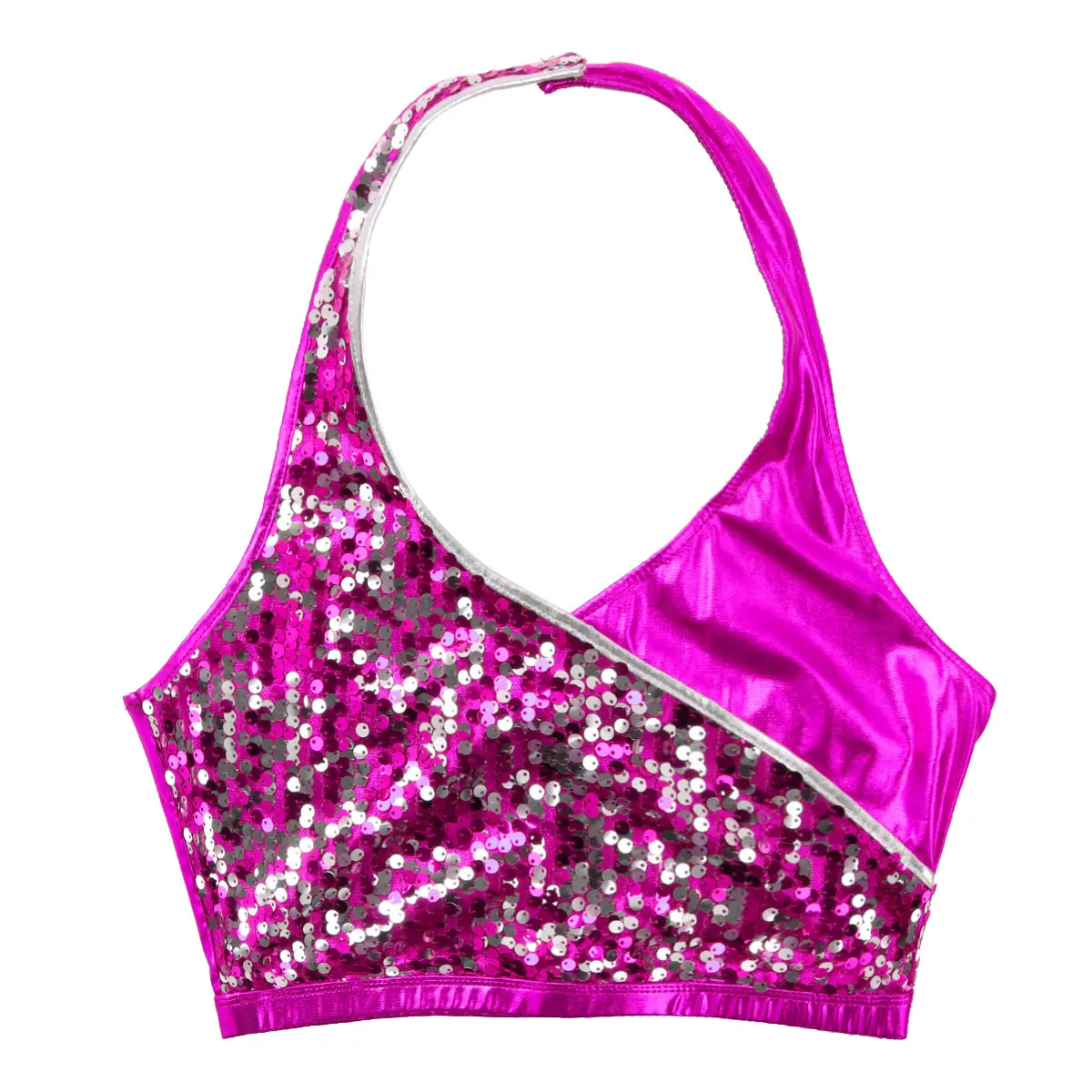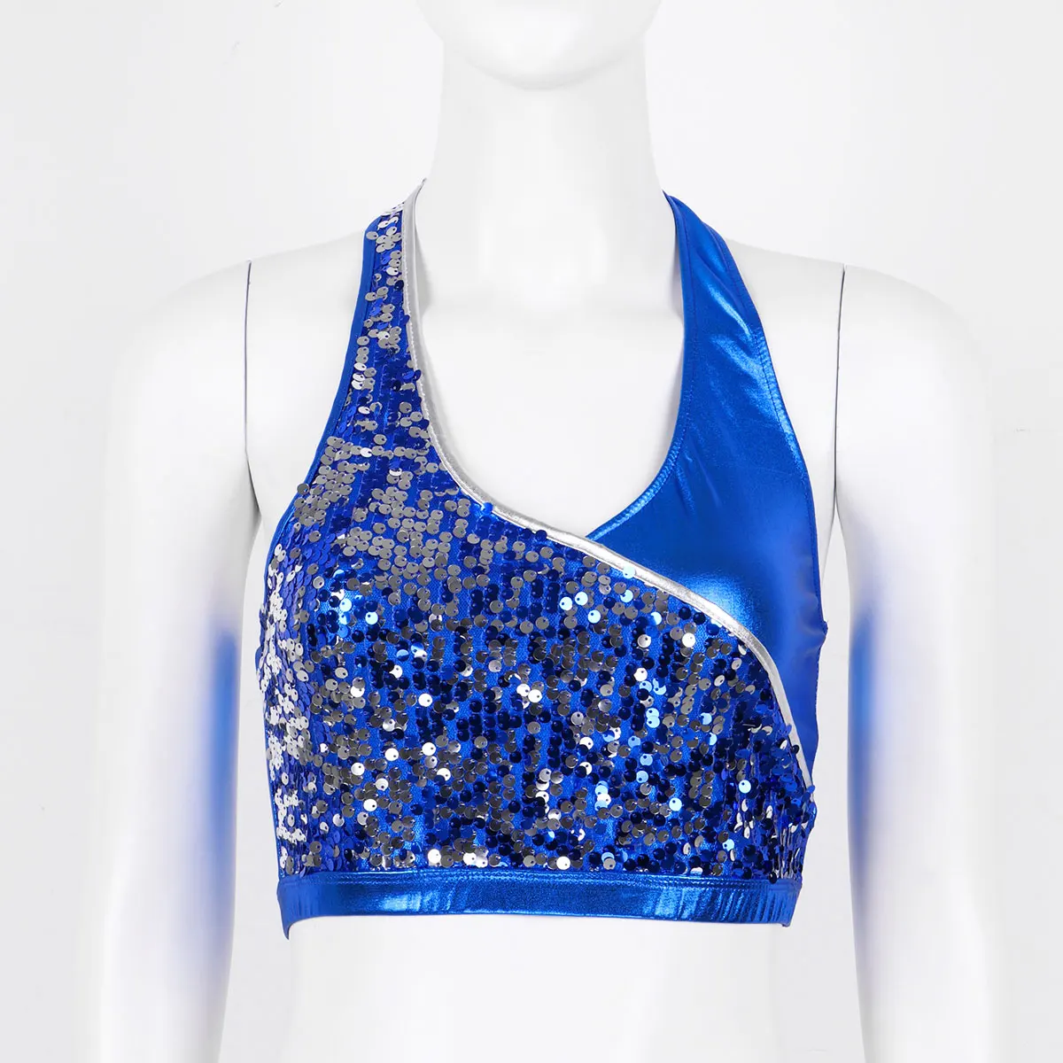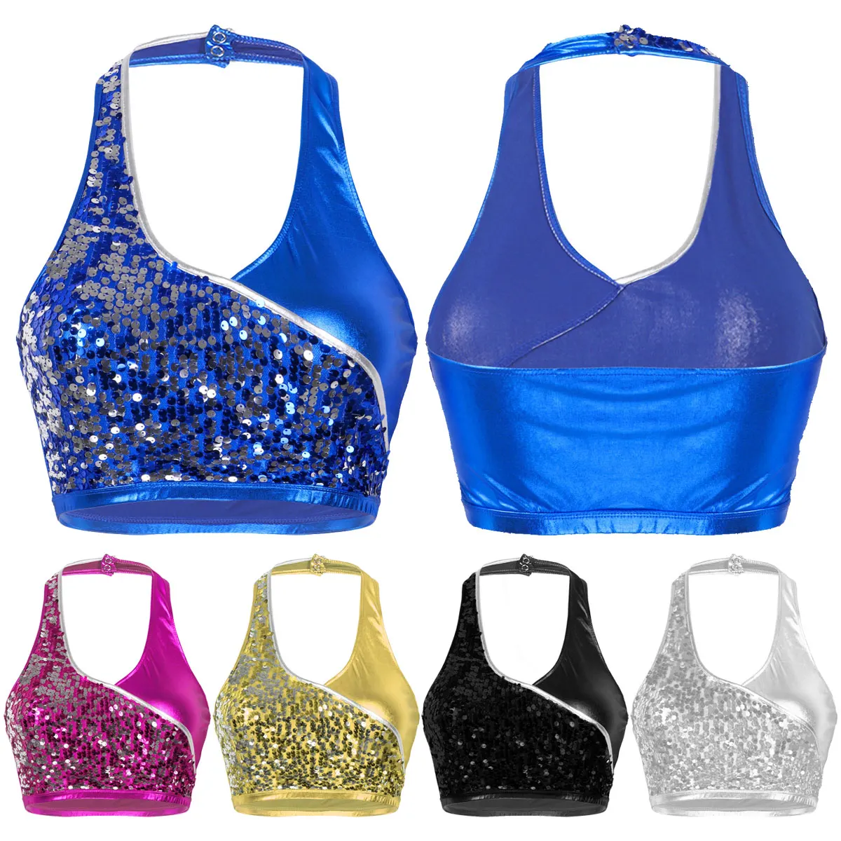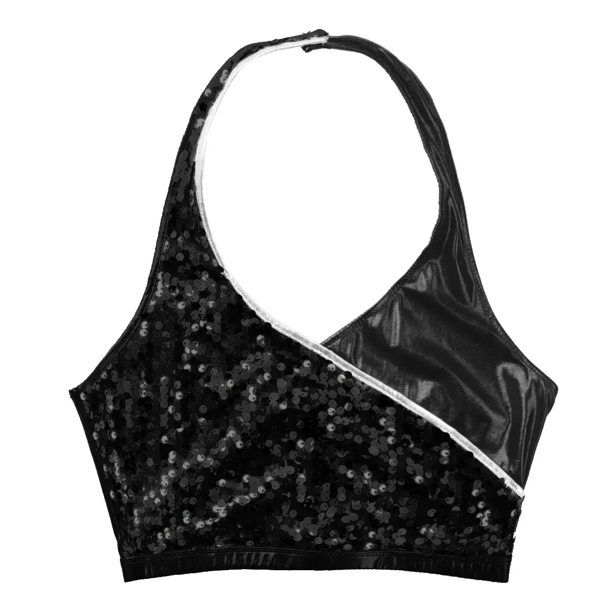 Воротник с лямкой на шее с отжимными пуговицами сзади, без рукавов и с низкой спинкой, дизайн с искусственным запахом, наполовину с блестящими блестками.