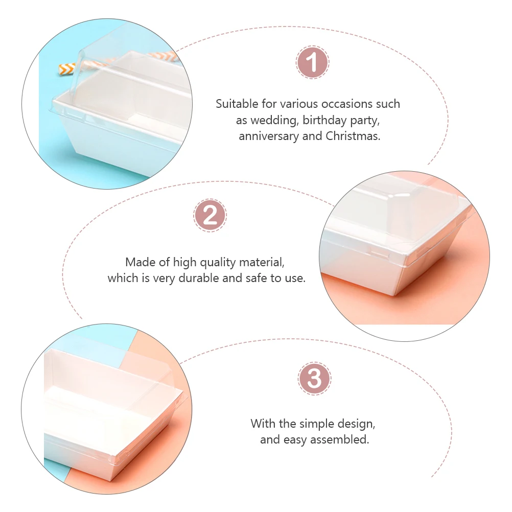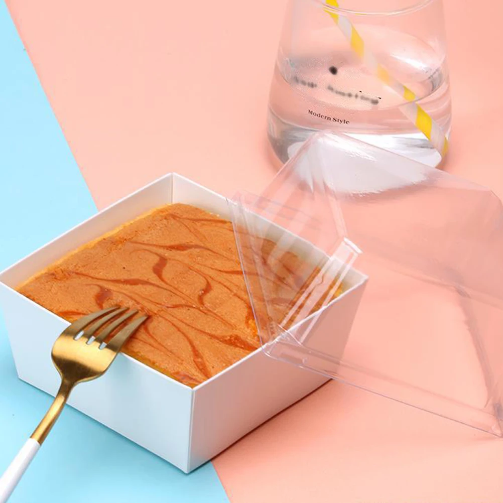 1 Set Square Cake Packaging Boxes Thicken Boxes Food Packing Boxes with Transparent Cover (50Pcs White Paper Box 50Pcs Transparent Cover)