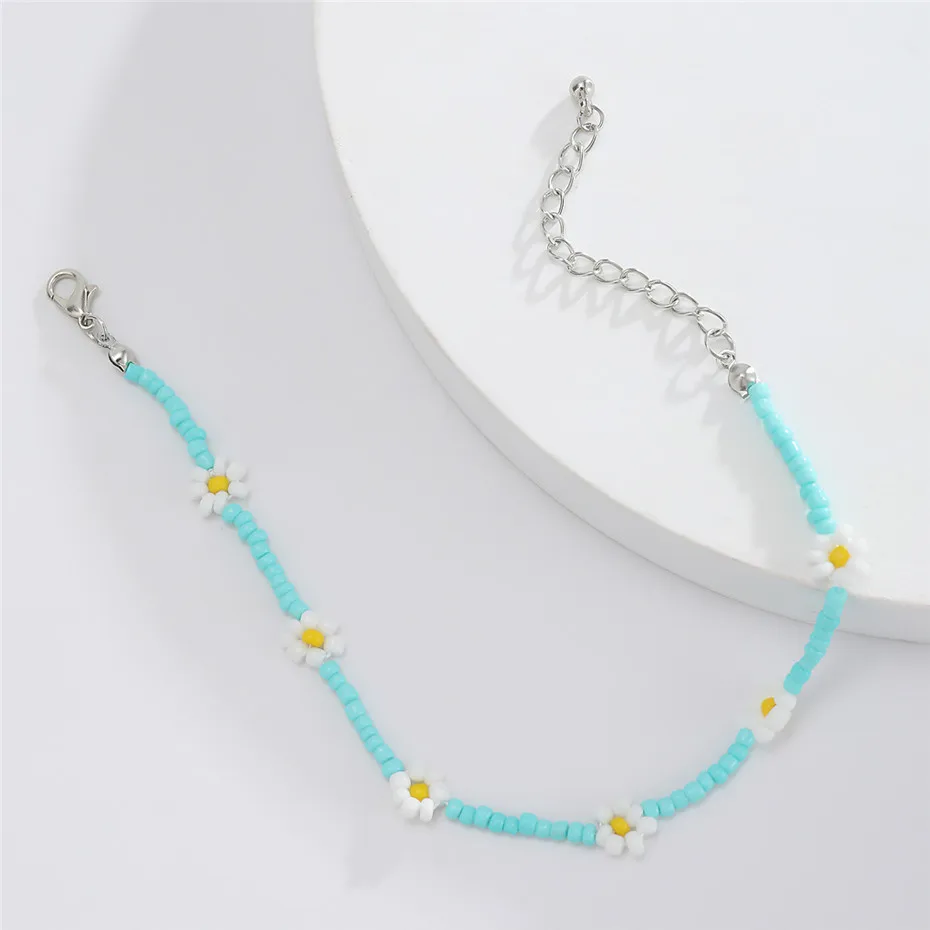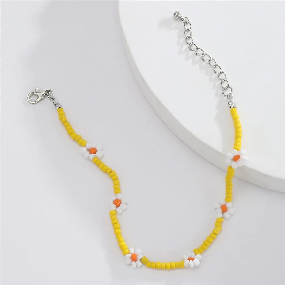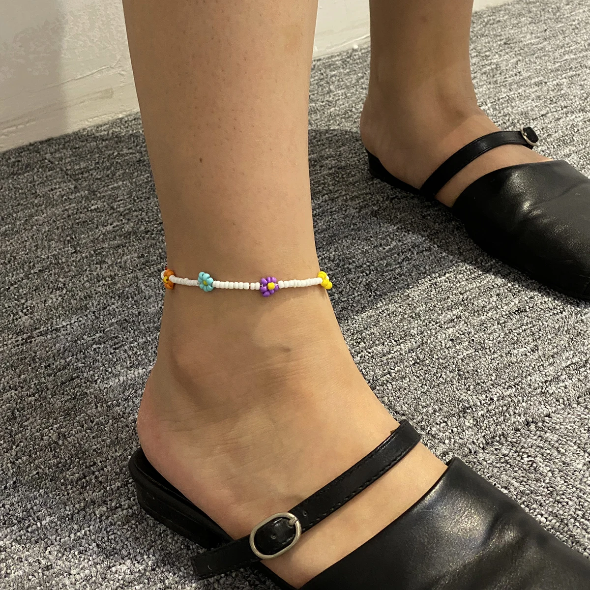 Женский браслет на щиколотке Kpop, разноцветный акриловый браслет с бусинами и цепочкой, украшение в стиле бохо, 2020