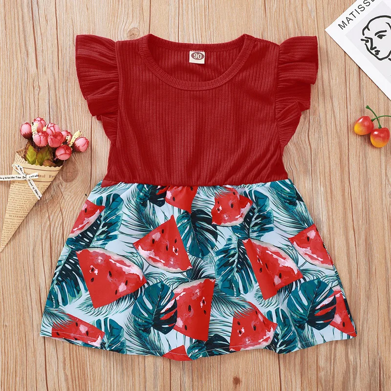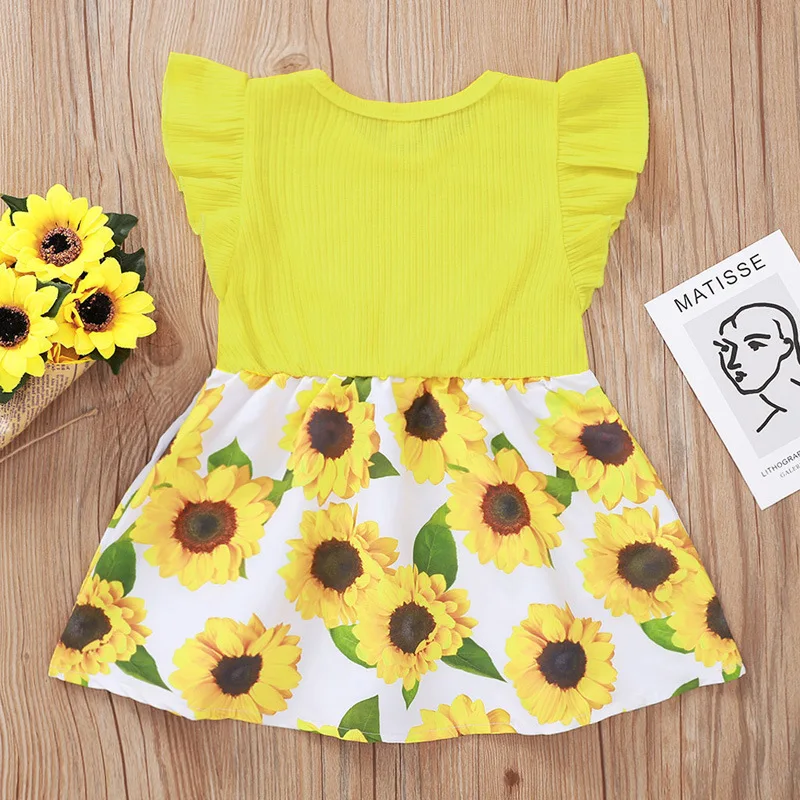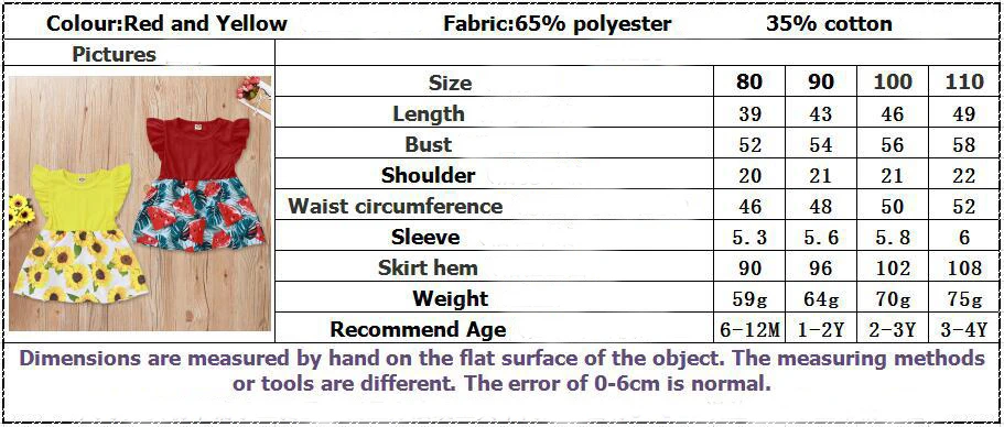 Хлопковые удобные Милые Желтые Детские комплекты для девочек с цветочным принтом Милое летнее платье модного дизайна Цвет: красный/желтый, как на изображении Эти модные наряды Очень ценны! С хлопковым материалом Идеально подойдет для летнего отдыха. Размер: 80/90/100/110 Таблица размеров: