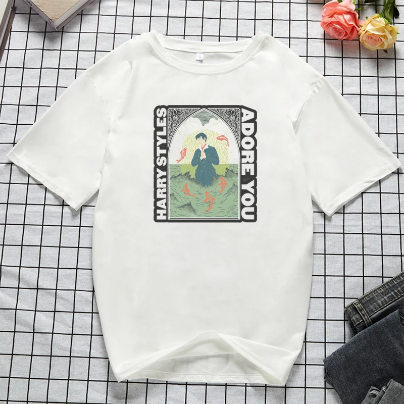 Стиль Гарри мода уличная белая серая футболка Harajuku футболка с принтом унисекс с круглым воротом футболка Топы