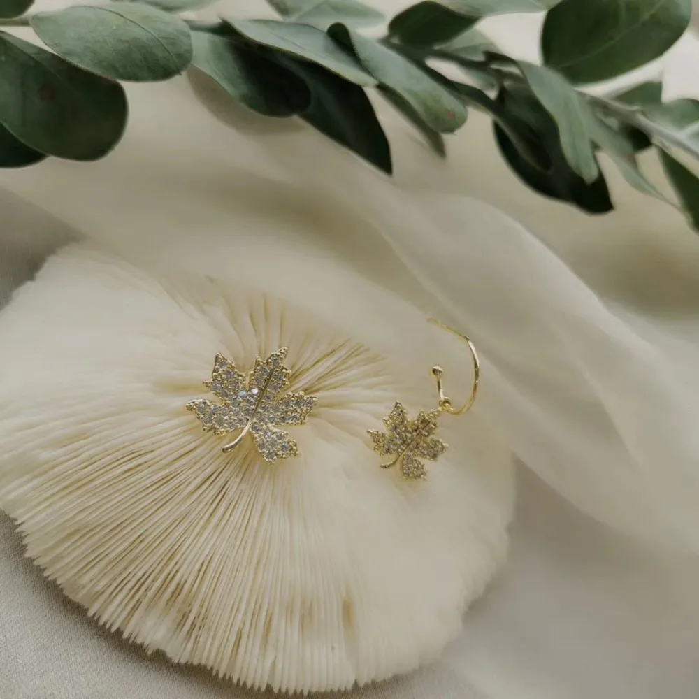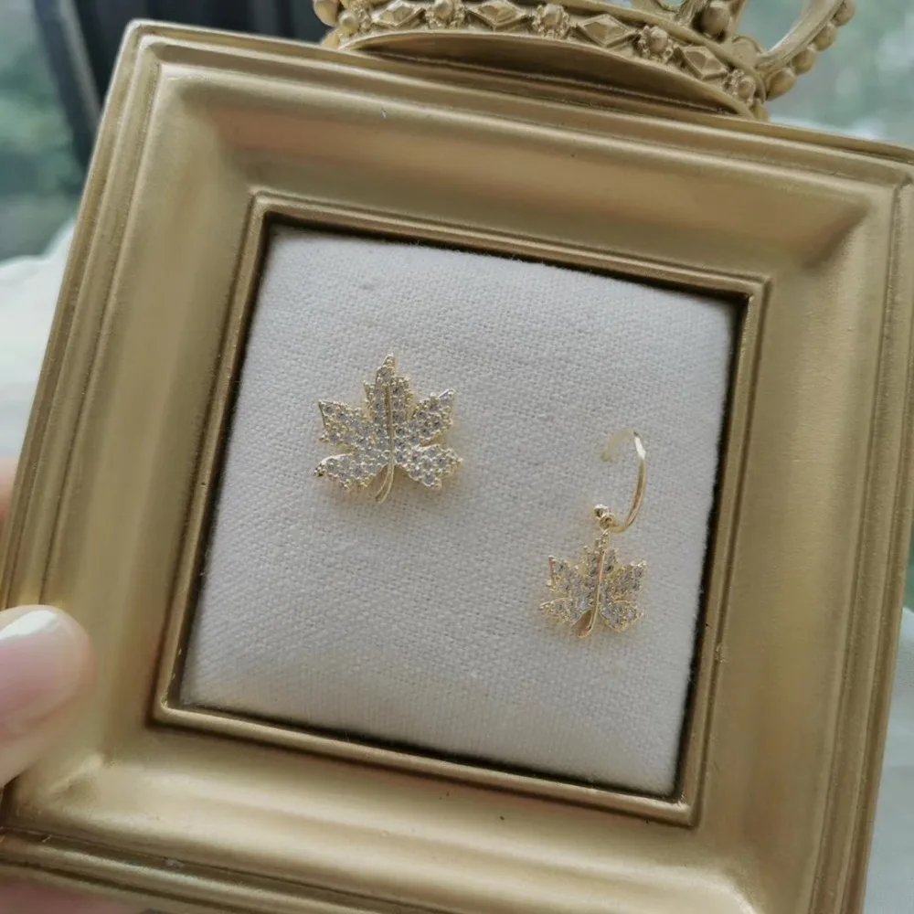2020 корейские новые модные асимметричные серьги с Кленовым листом из циркония 925 серебряные серьги с высоким чувством темперамента дикие серьги