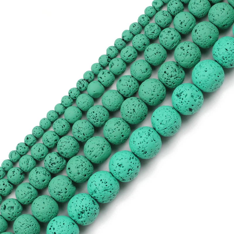 Hgklbb зеленый каучук натуральный камень из вулканической лавы круглый разделительные бусины для самостоятельного изготовления ювелирных изделий Браслеты стержня уха 4/6/8/10/12 мм