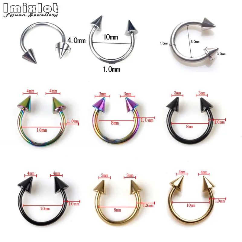 8/10 шт. кольцо из нержавеющей стали для пирсинга носа Подкова шарик шип