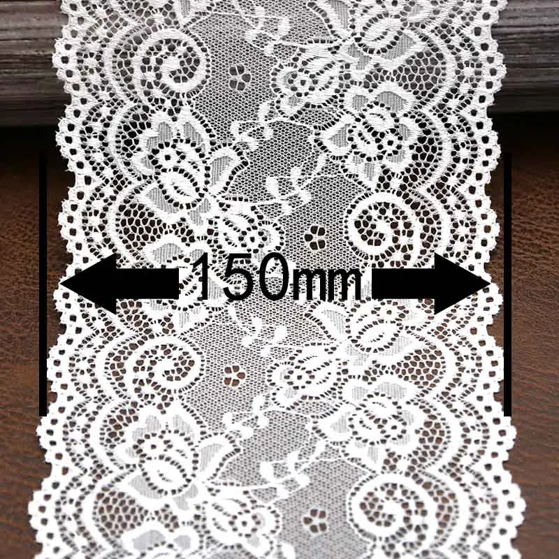 Название: Кружево Длина: 3 м/лот Ширина: 150 мм Материал: спандекс/полиэстер Использование: «сделай сам» вручную, лента для упаковки подарков, сделай банты для волос, украшай мини-шляпы, украшай платья для девочек, свадебные украшения, праздничные украшения вечерние т. д.