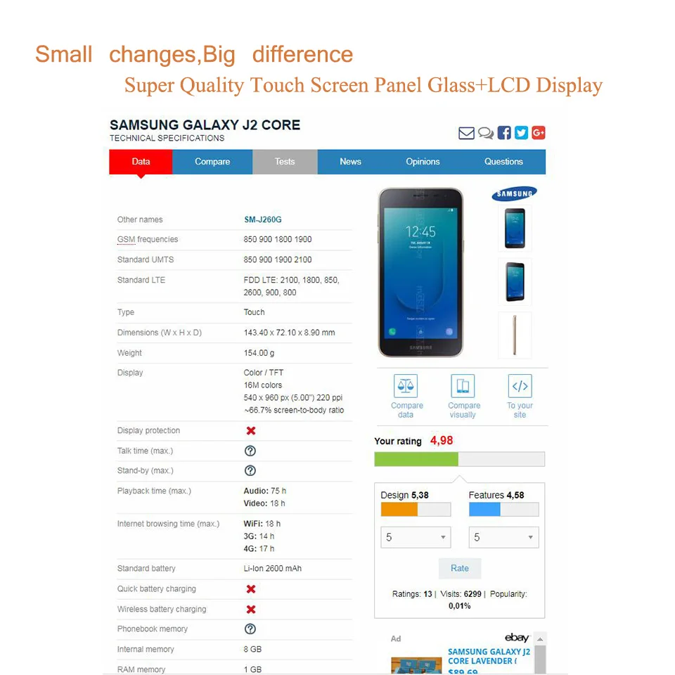 10 шт./лот оригинал для Samsung Galaxy J2 Core 2018 J260 J260M/DS J260F/DS J260G/DS ЖК-дисплей сенсорный сенсор дигитайзер сборка