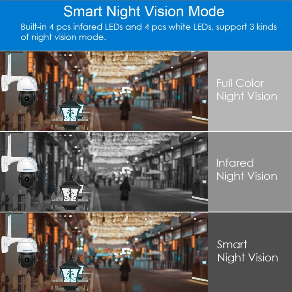 Встроенный 4 инфракрасных светодиода и 4 белых светодиода, поддерживает 3 вида режима ночного видения.