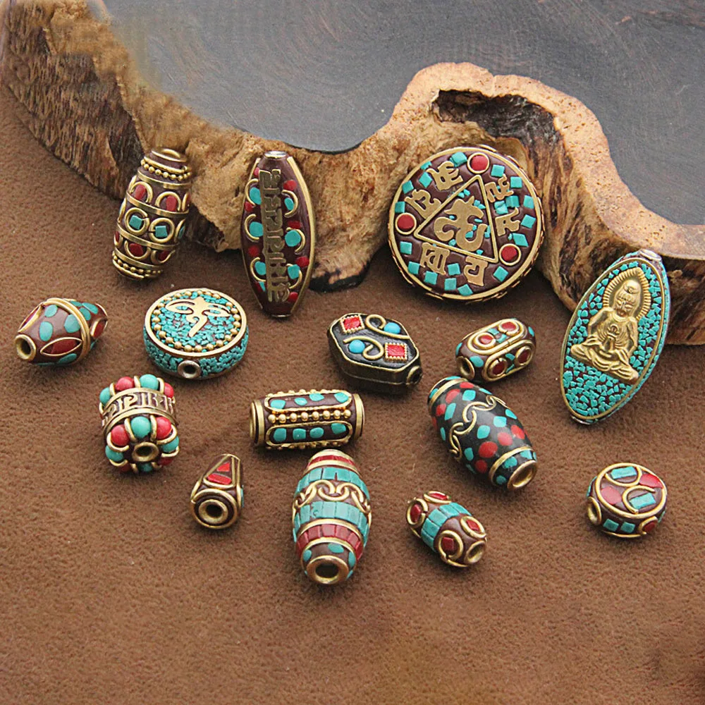 15 видов стилей ретро Непальские бусы ручной работы красный коралловый Тибетский бисер античный золотой для самостоятельного изготовления ювелирных изделий Браслеты