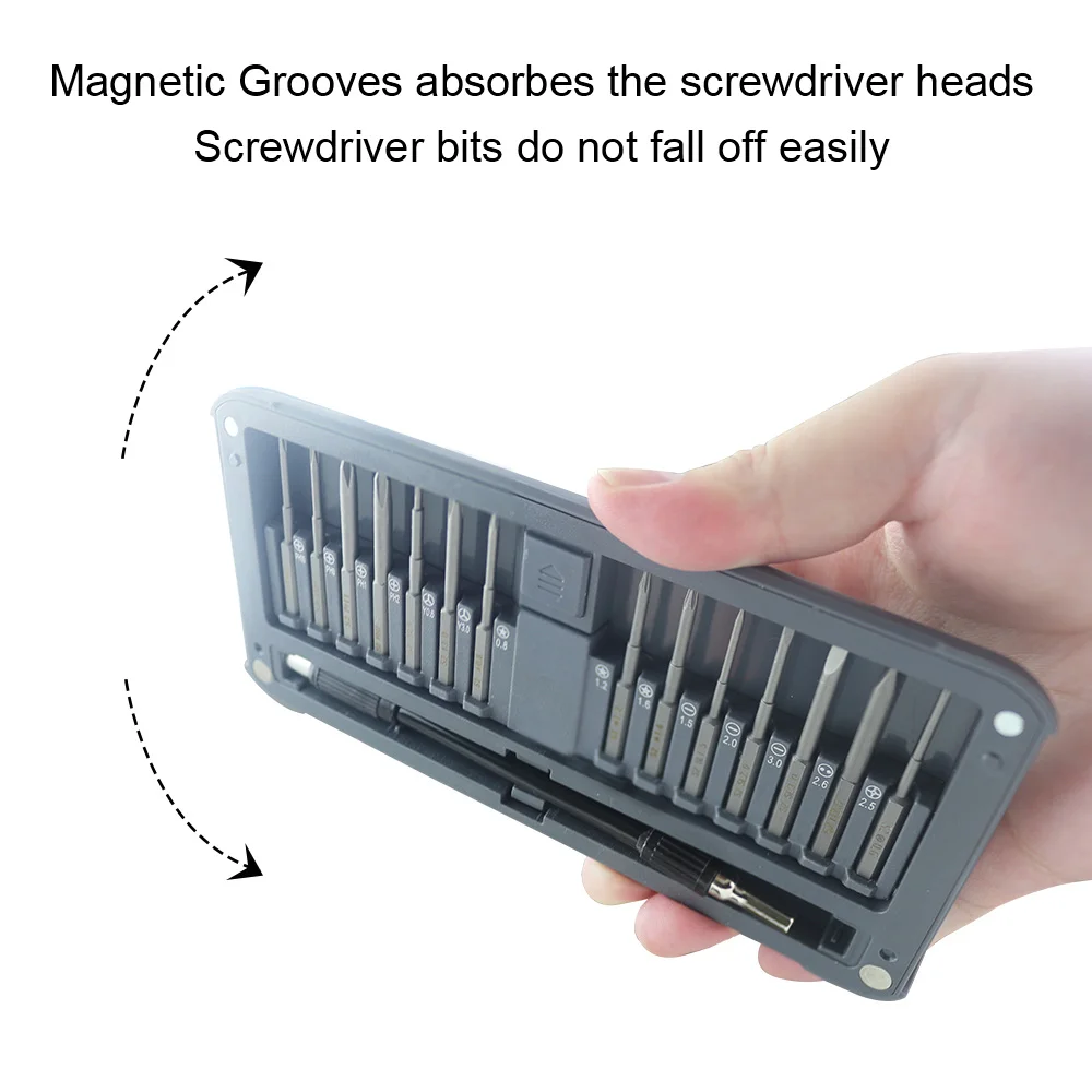 Биты: • Phillips: PH000 PH00,PH0,PH1,PH2 для бытовой техники • Прорези: SL1.5, SL2.0, SL3.0, SL4.0 для бытовой техники • Крышки Pentalobe (звезда): 0,8 мм/1,2 мм для Ipone • Torx:T2 T3 T4 T5 T6H T8H T10H T10H T15H для телефона Android • Шестигранник: H1.5, H2.0 • Треугольники: 2,3 мм для бытовой техники • U "форма: 2,6 для Высокое качество патч Панель Посылка: • 1 отвертка • 1 пластиковая коробка • 24 отвертки