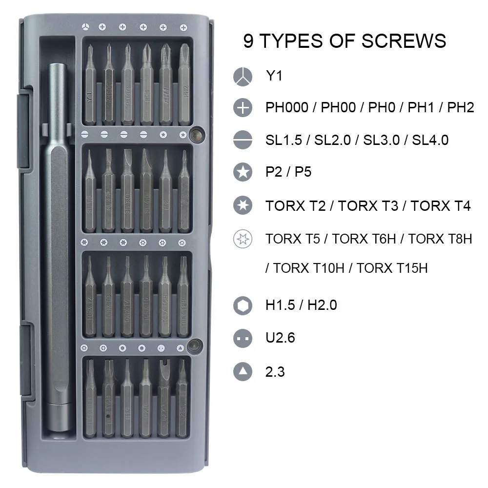 Биты: • Torx:T1, T2, T3, T4, T5H, T6H, T8H, T10H, T15H для телефона Android • Шестигранник: H1.5, H2.0, H3.0 • Треугольник: 2,3 для бытовой техники • Phillips: PH000 PH00,PH0,PH1,PH2 для бытовой техники • Тип Y: Y0.7, Y3.0 для GB BBA NSDL WII • Звезда: 0,8, 1,2, 1,6 для телефона • Прорези: SL1.5, SL2.0, SL3.0 для бытовой техники • U "форма: 2,6 для Высокое качество патч Панель 2,5