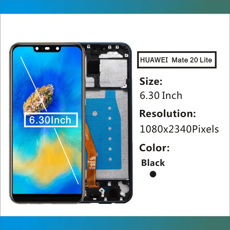 * Совместимость с: Huawei Mate 20 Lite * Модели: SNE-AL00, SNE-LX1, SNE-LX2, SNE-LX3, INE-LX2 * Размеры: 6,3 дюймов * Тип сенсорного экрана: емкостный экран * Разрешение: 1080x2340 пикселей * Цвет: черный, синий, золотой * Вариант: без рамки/с рамкой (пожалуйста, выберите правильный цвет и вариант)