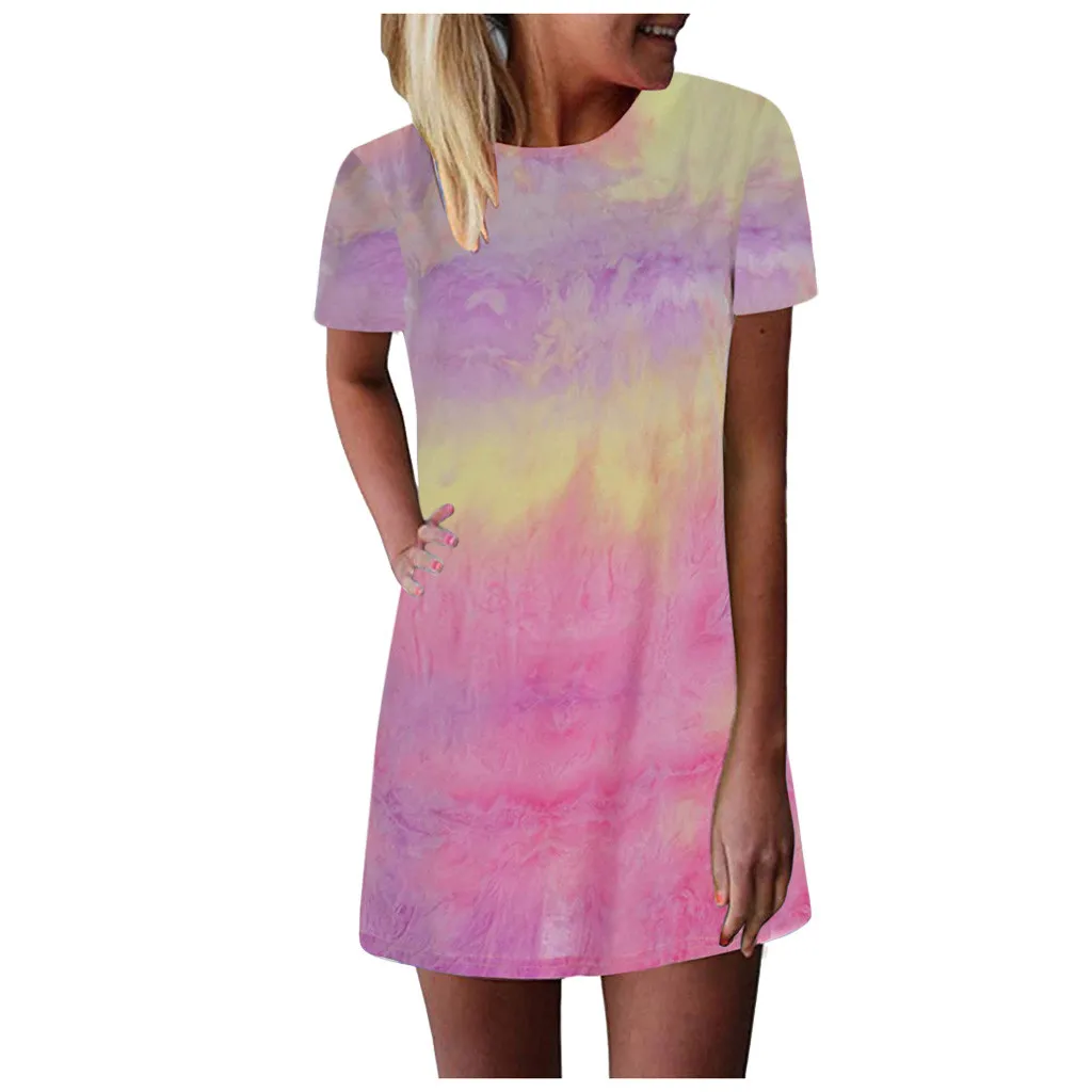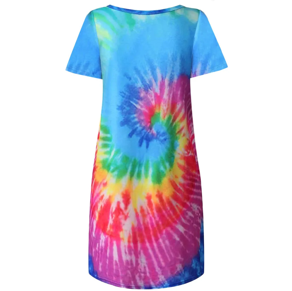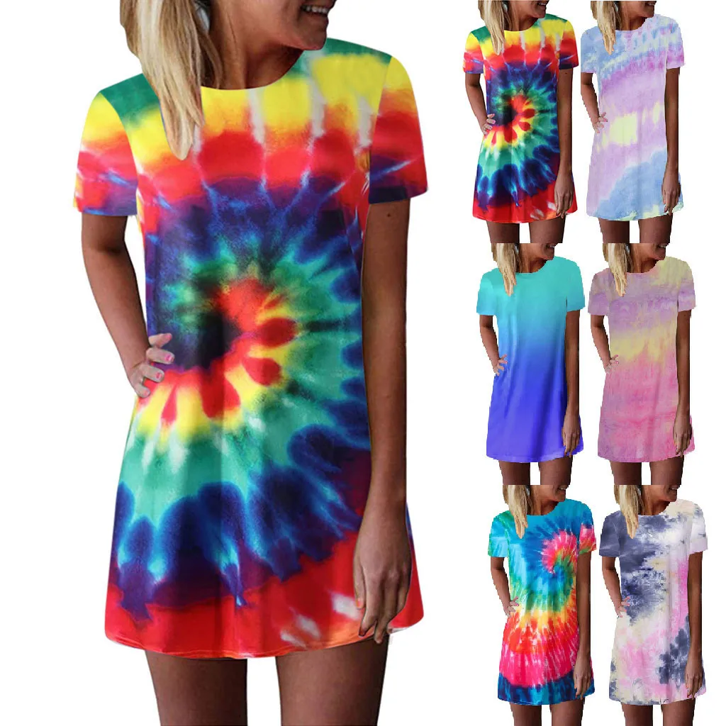 Женские летние повседневные футболки с принтом в виде галстука-красителя, платья с коротким рукавом