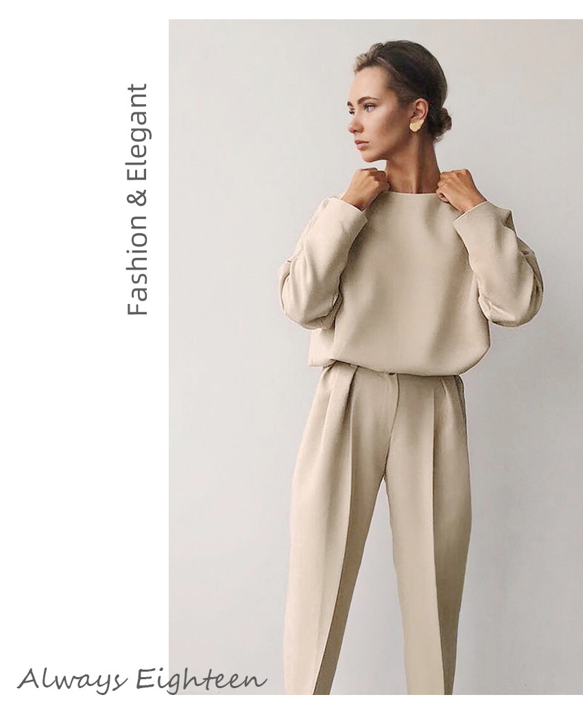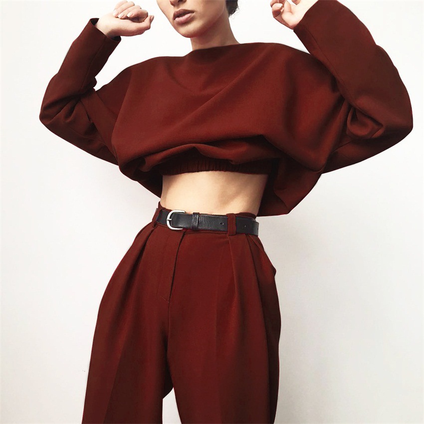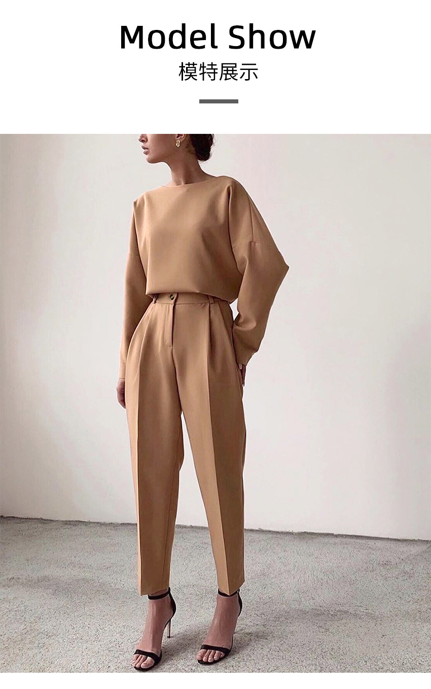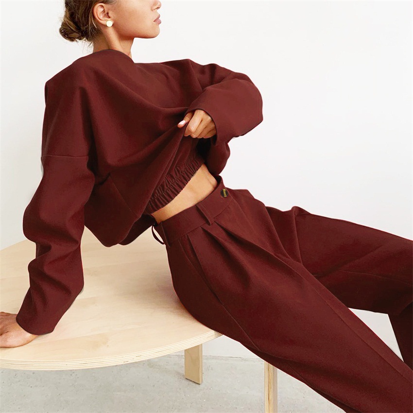 Повседневные штаны с высокой талией для женщин и толстовка весенний Коричневый Женский офисный комплект из 2 предметов с карманом на молнии однотонный элегантный женский костюм