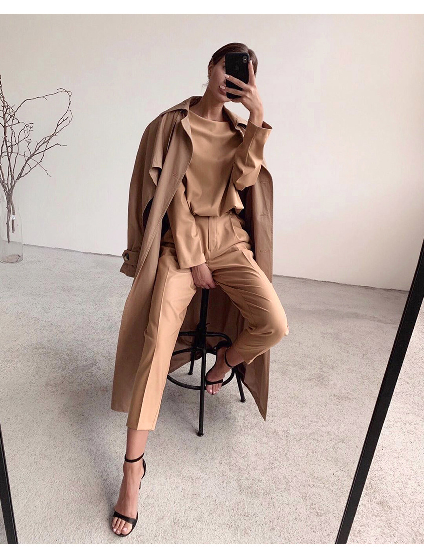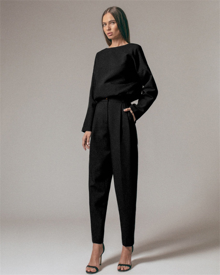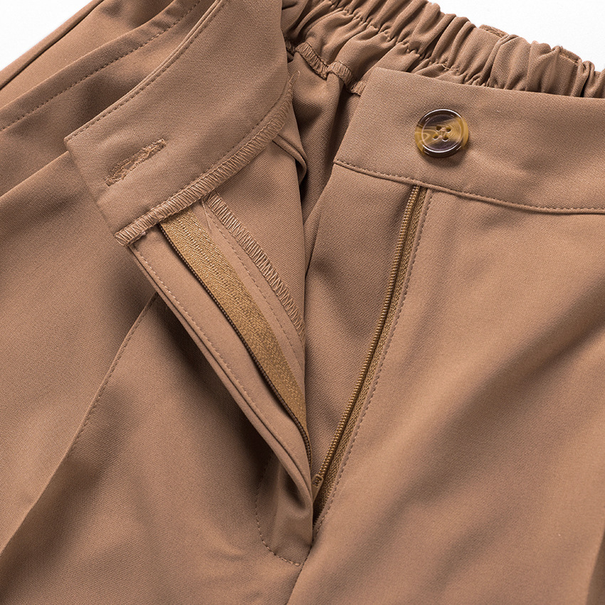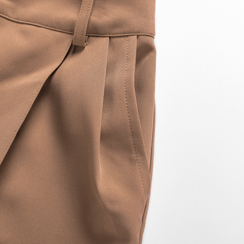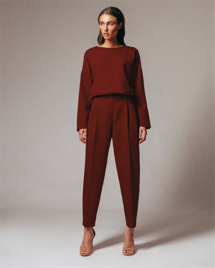 Повседневные штаны с высокой талией для женщин и толстовка весенний Коричневый Женский офисный комплект из 2 предметов с карманом на молнии однотонный элегантный женский костюм
