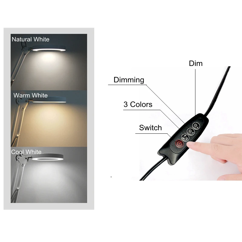 - [5X увеличение] цветовая температура светодиодный светильник может быть скорректирована в 3 уровнях, и яркость может быть скорректирована в 11 уровней, которые могут удовлетворить различные рабочие среды. Корпус из алюминиевого сплава обладает хорошей теплоотдачей и долговечностью.