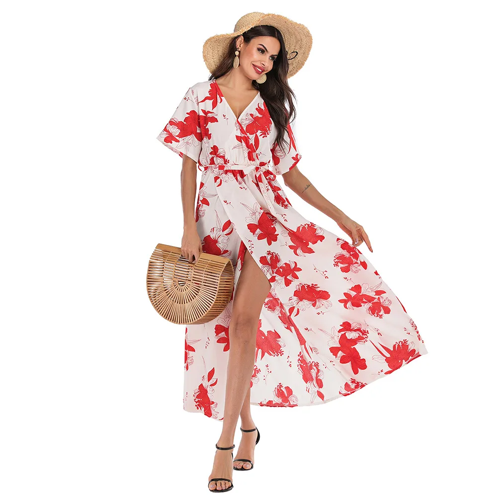 Летнее нарядное пляжное платье для маленьких девочек 2020 женское платье с коротким рукавом с принтом платье с цветочным рисунком в стиле «Бохо винтажные вечерние нарядное Дамское Платье