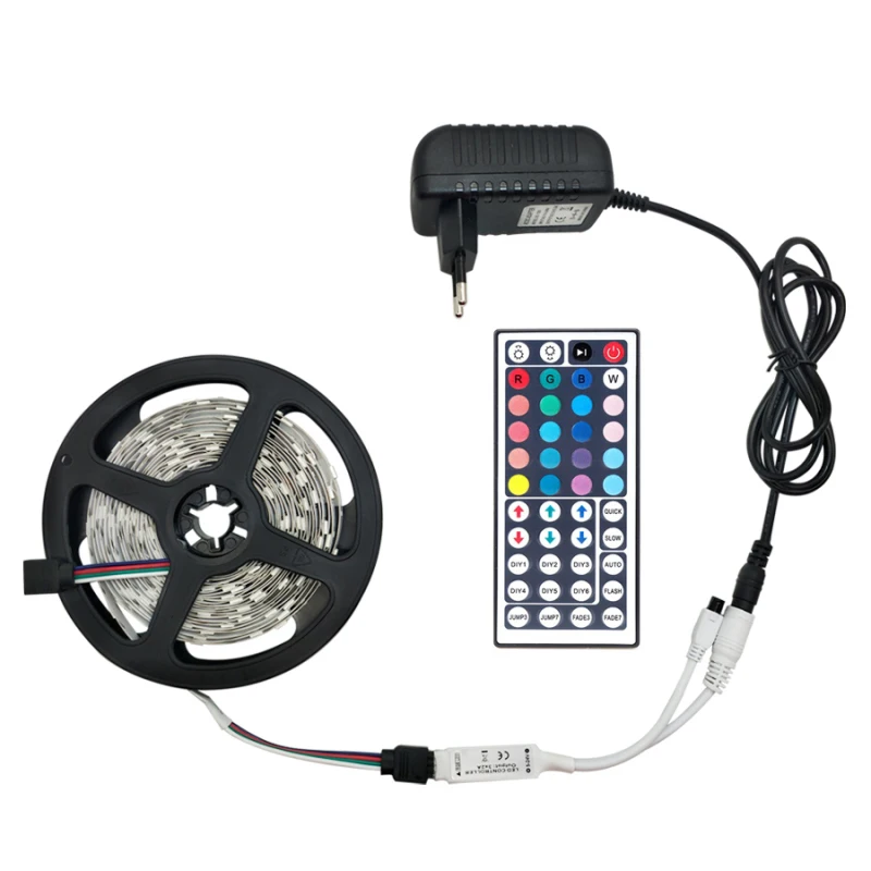 5 м: 1 светильник в рулоне, 1 пульт дистанционного управления (встроенный аккумулятор), 1 светильник в рулоне, 1 разъем питания (США или европейский)