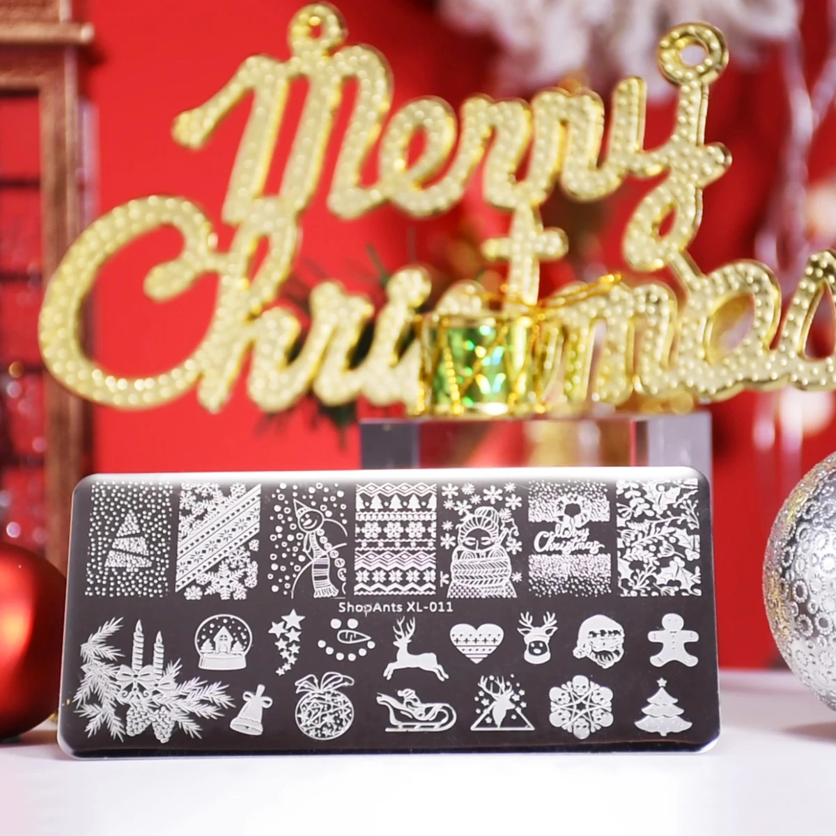 ShopAnts пластины для штамповки ногтей Рождественская елка снежинка звезды колокольчик изображение трафарет для ногтей штамп шаблон формы
