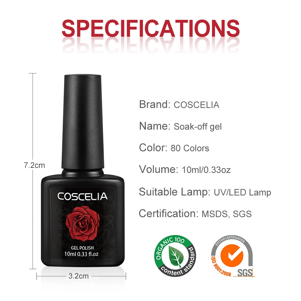 Бренд: COSCELIA Тип: отмачиваемый Гель-лак Объем: 10 мл Излеченная: УФ/Светодиодная лампа